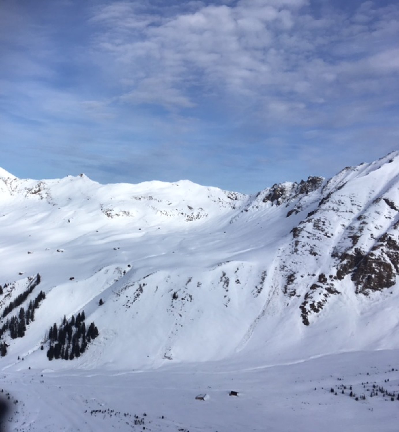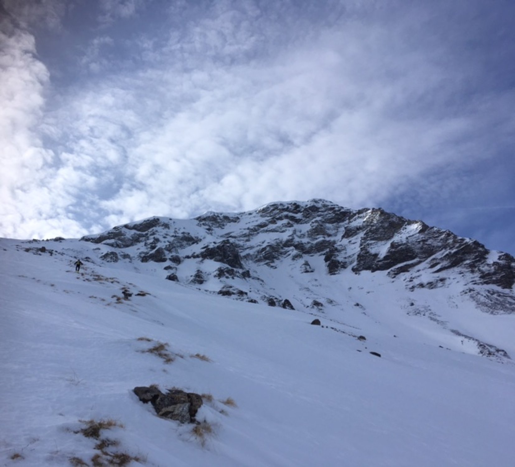 Im flachen Teil im Tal hat es guten Pulverschnee. Sind dann direkt rechts hoch. Es empfiehlt sich die Harscheisen zu montieren. Denn unter dem Neuschnee ist es total vereist. Und je mehr man an Höhe gewinnt, desto harter wird das Eis. D.h. wir konten nicht Mal die Schlüsselstelle erreichen, weil es nur noch blankes Eis wie auf einer Eisbahn hat. Gut wäre gewesen wir hätten die Steigeisen und den Pickel dabei gehabt. Somit sahen wir uns gezwungrn, auf zirka 2'300.- umzukehren. Die Abfahrt war im Pulverschnee gut nur musste man auf die abgeblasenen Eisfelder acht geben.