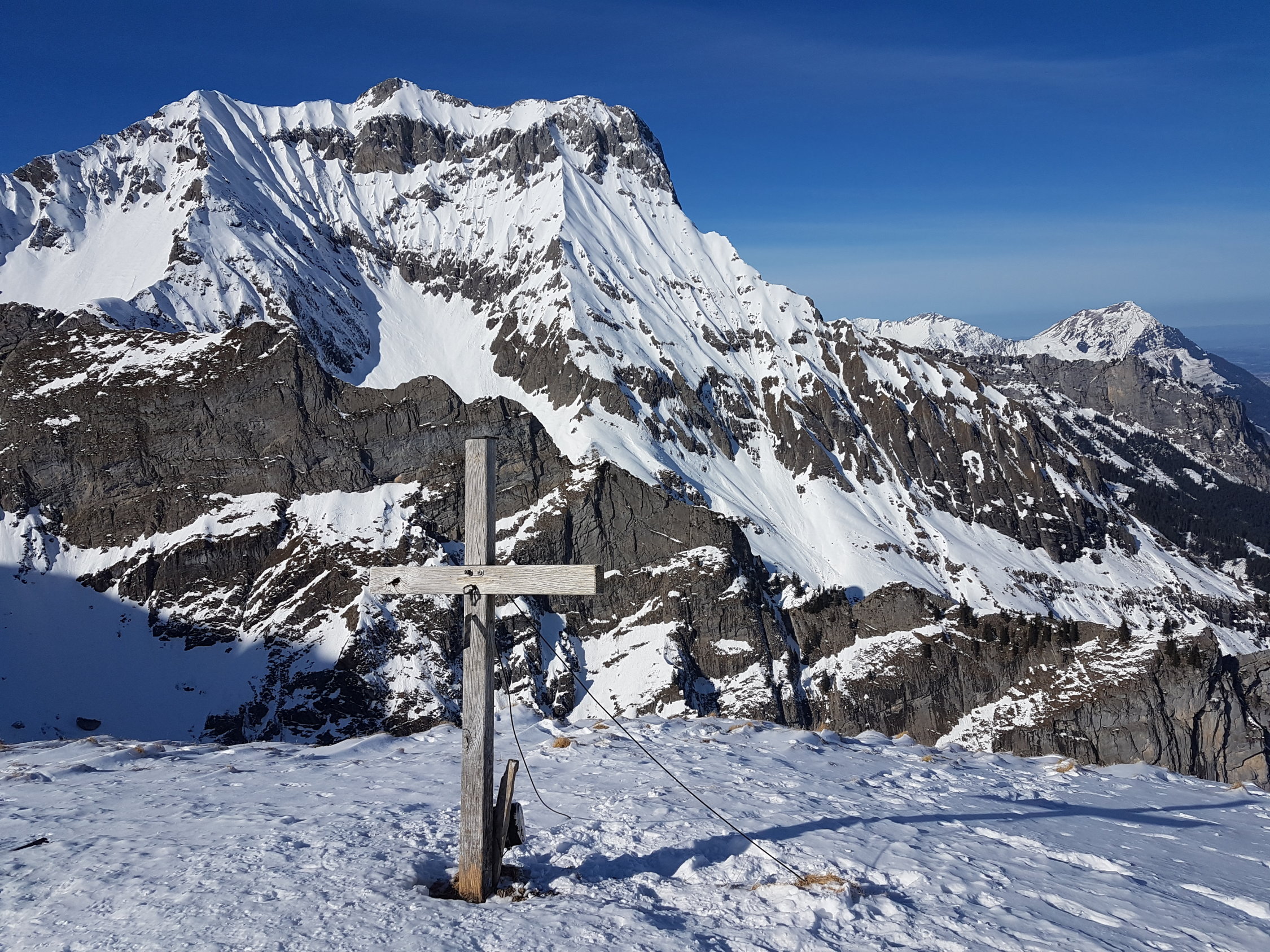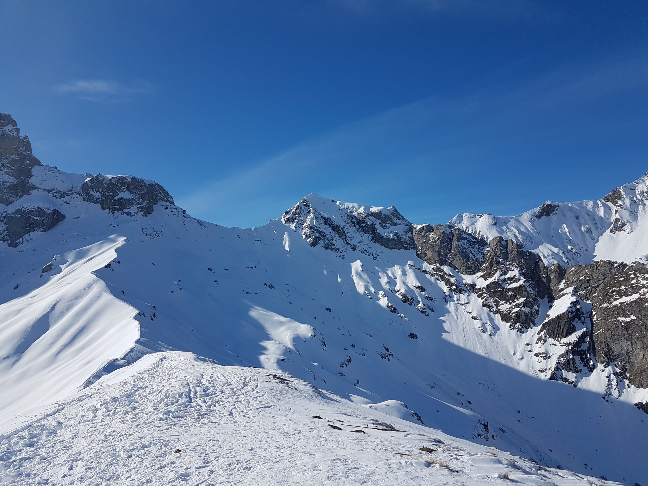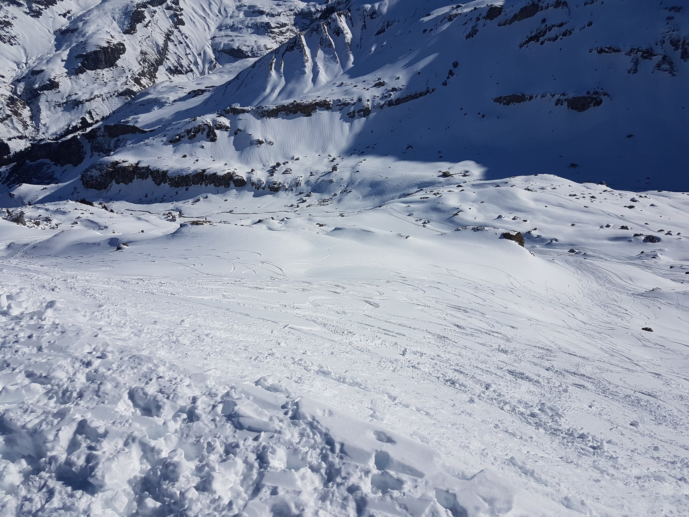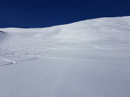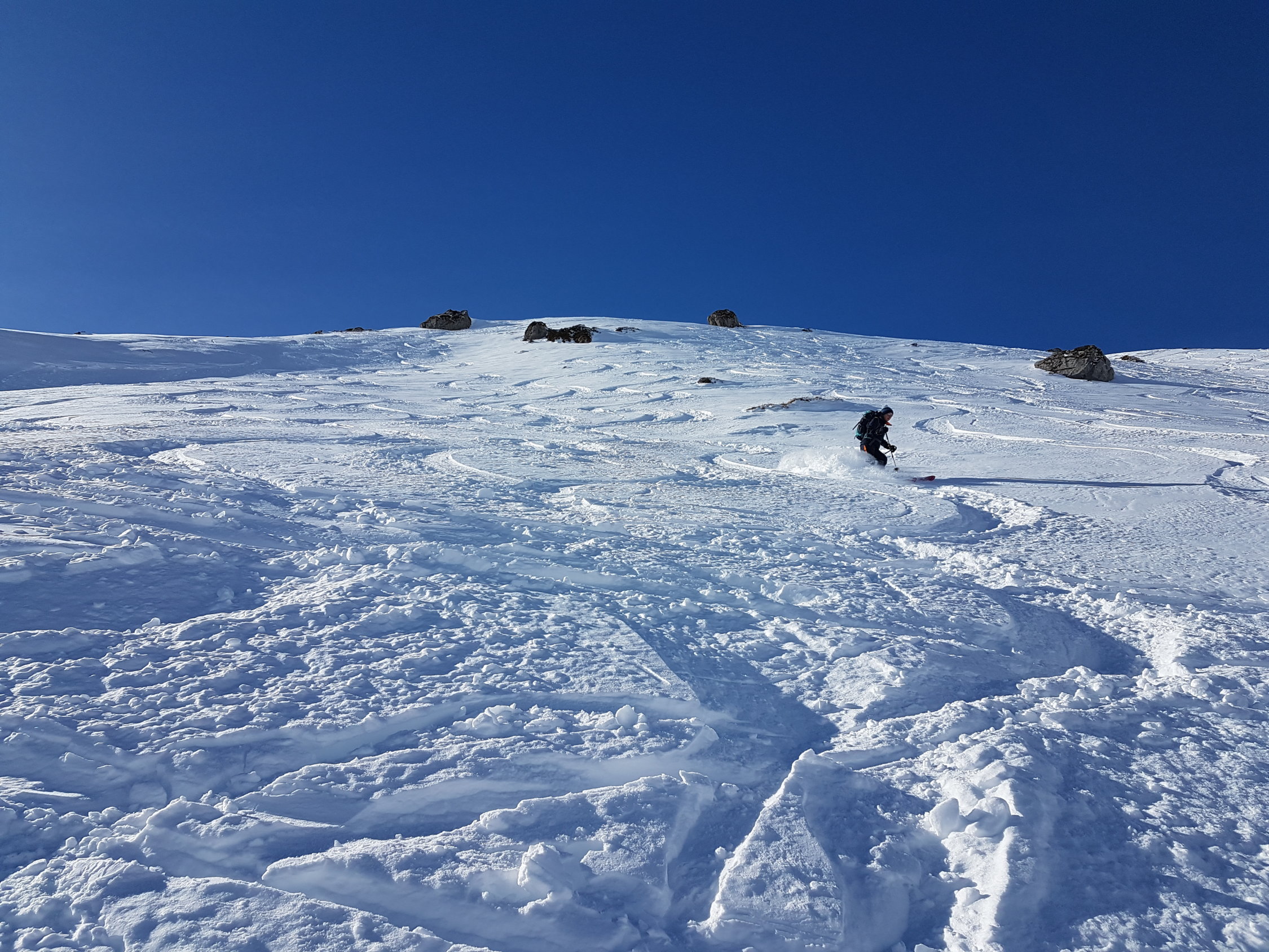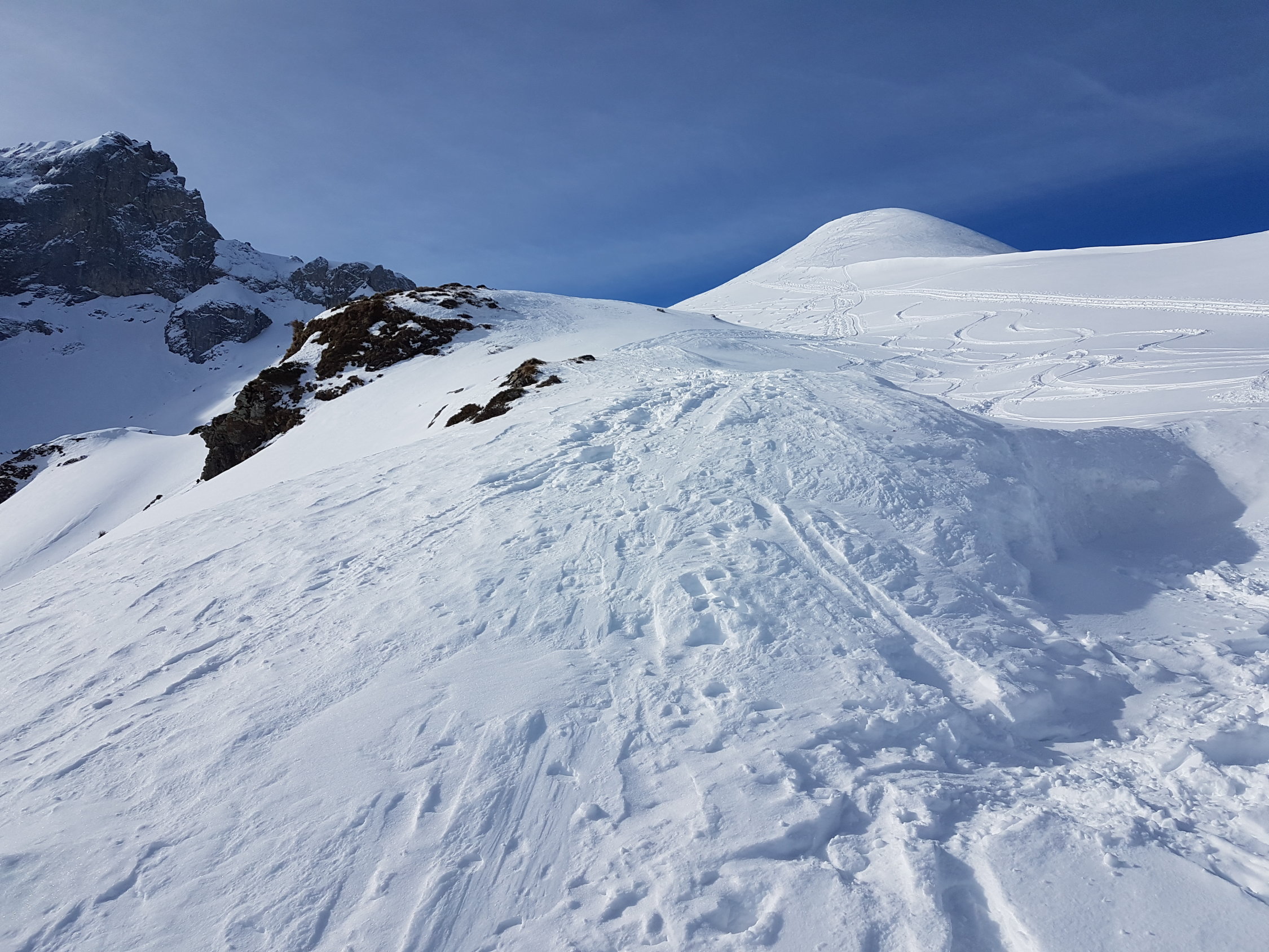 Sehr überraschend gab es dann am Chistihubel weder Eis noch Bruchharst, sondern Pulver (wenn auch unmittelbar unter dem Gipfel durchnässt).