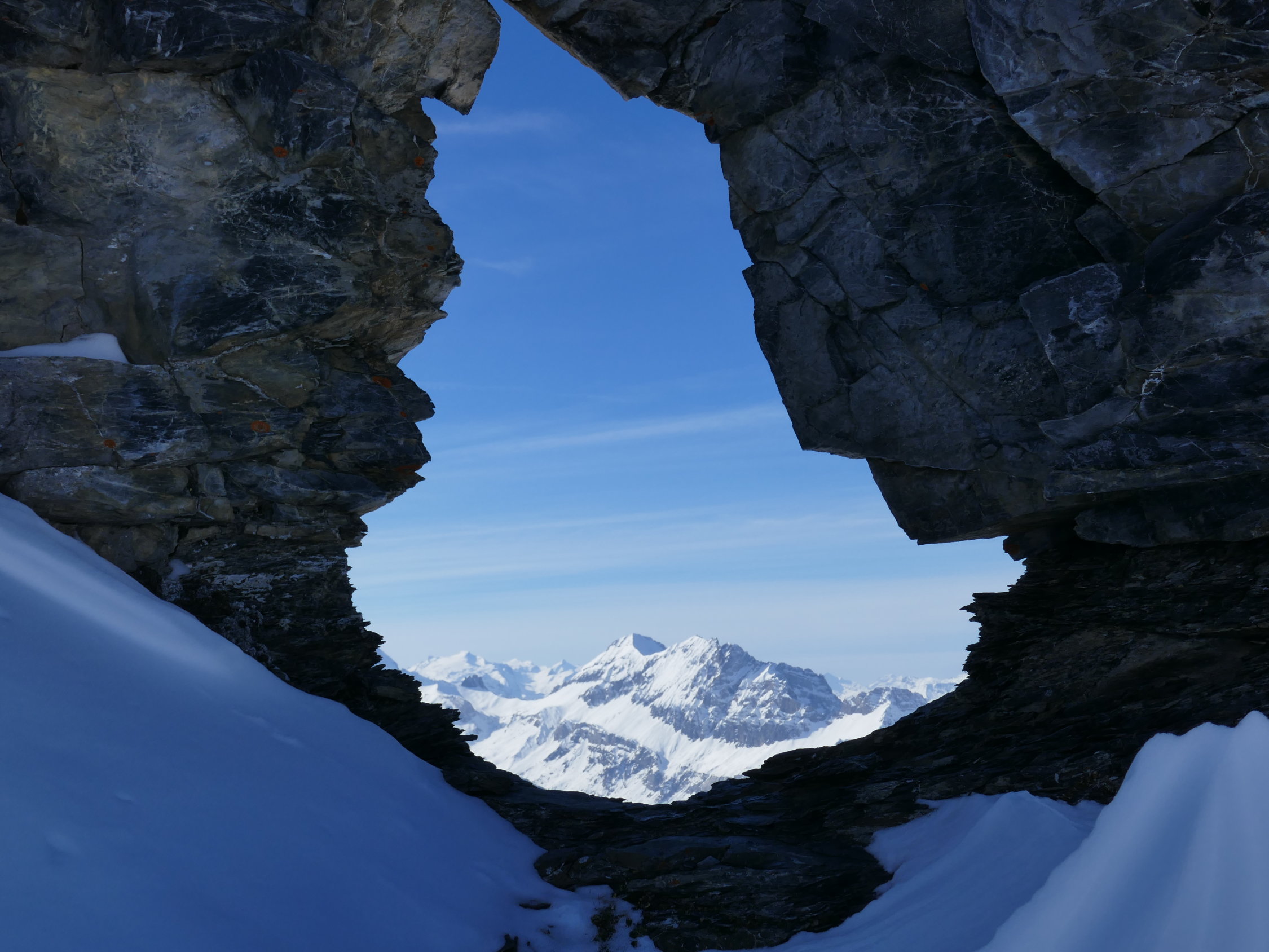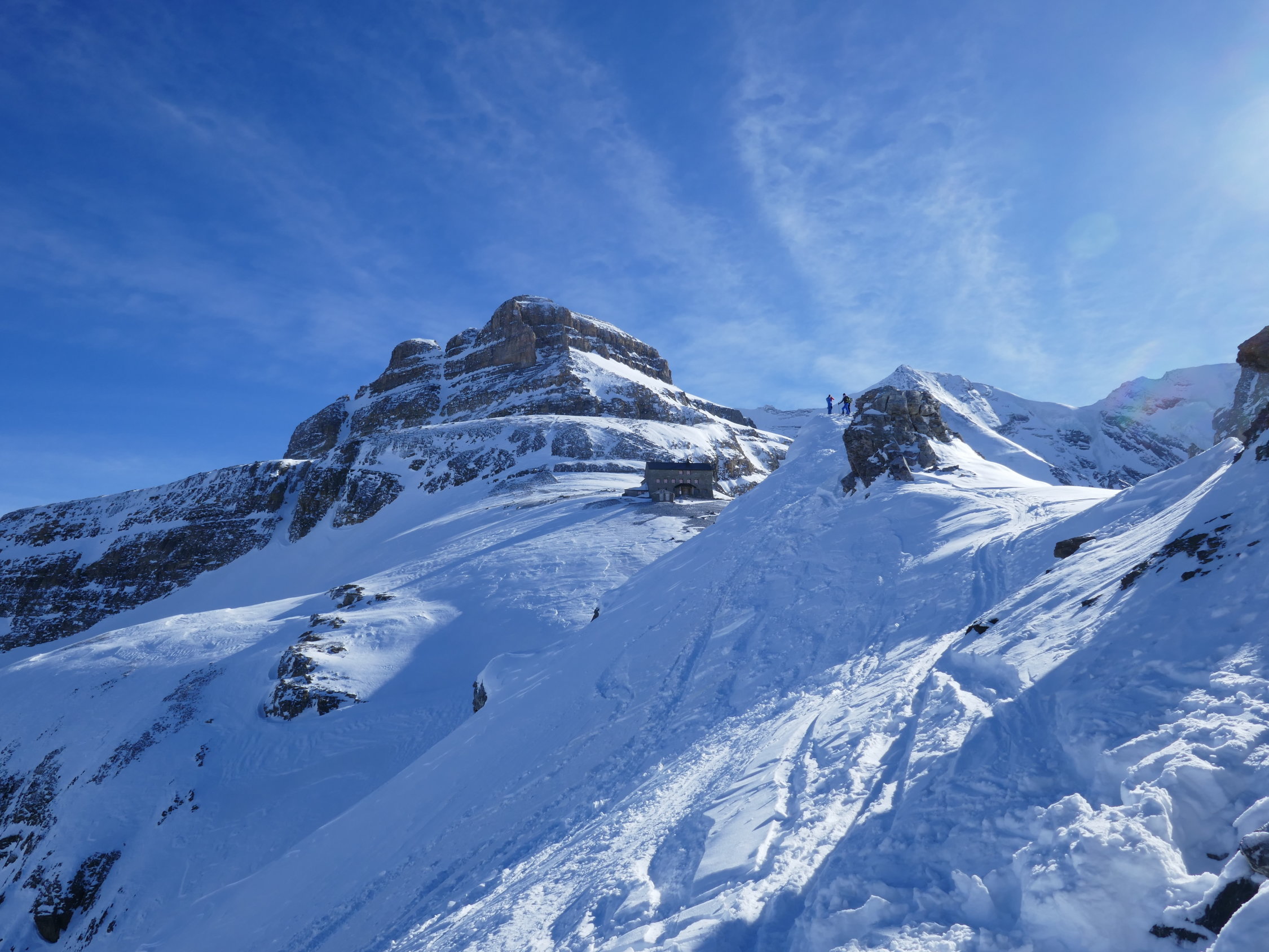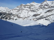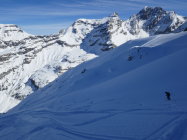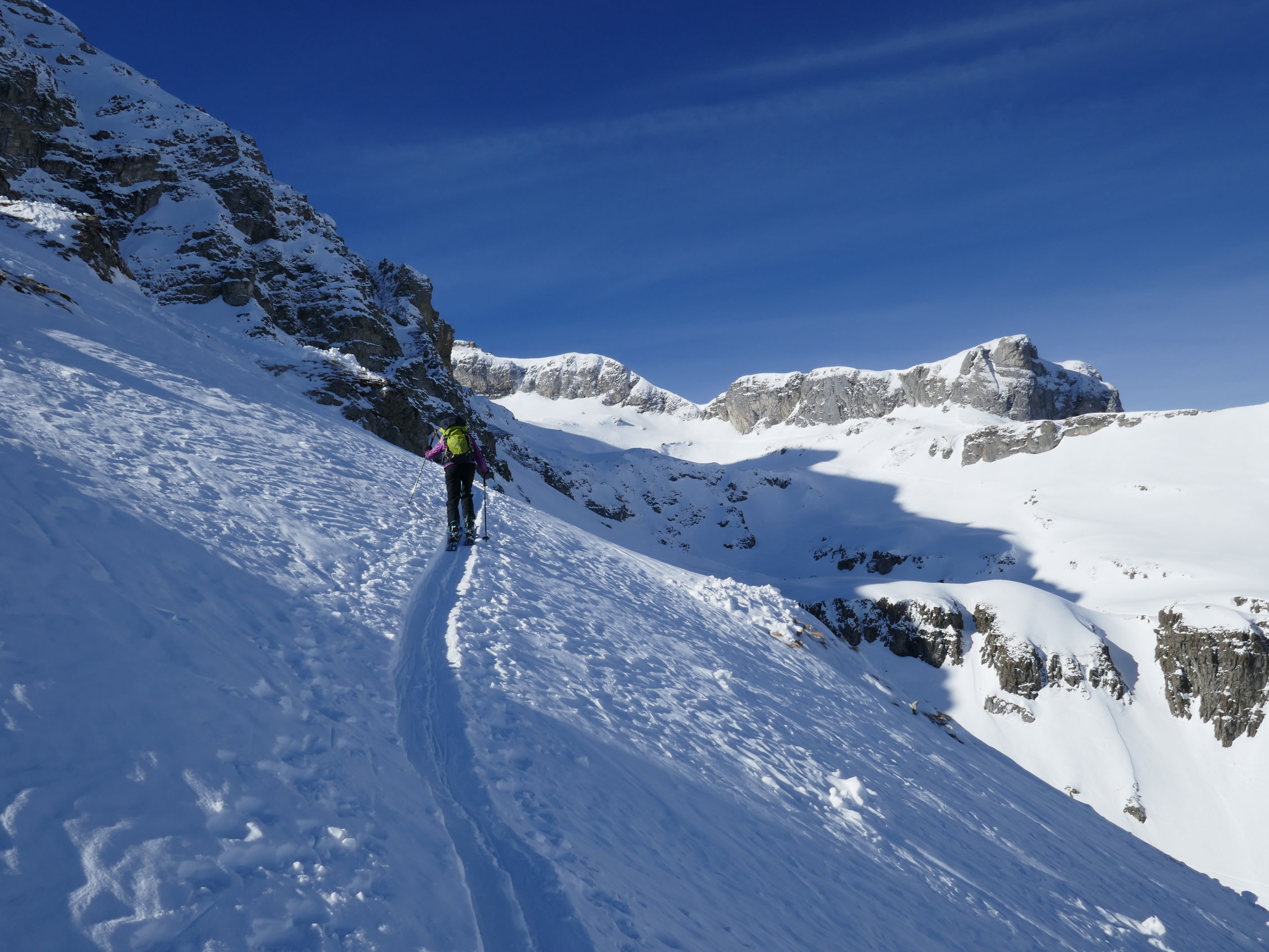 Vom Wind kaum bearbeiteter Pulverschnee und genügend verschneite Alpwege und -