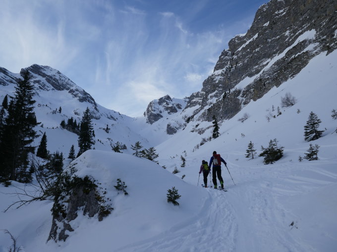 Pulverschnee zunehmend verfahren, genügend Schnee auf Alpstrassen