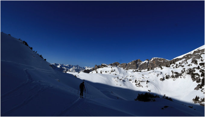 Was ein wunderschöner und mollig warmer Tag. Auch Skifahren ging meist recht gut. Dass das Gebiet starkt frequentiert, weiß man als Besucher,aber die Leute verlaufen sich auch ganz gut.