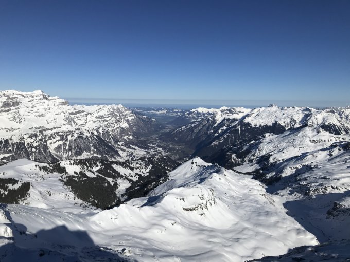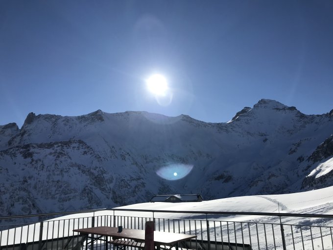 Sehr gute Verhältnisse von oben bis unten Pulver. Die Ketten zum Gipfel sind Schneefrei.