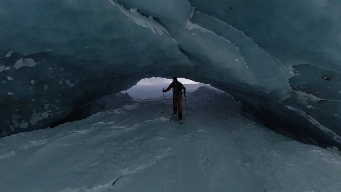 Der Schnee war unten sehr hart, ab Tätsch dann zunehmend etwas lockerer Schnee. Oben dann zunehmend stellenweise wieder abgeblasener harter Schnee. Beeindruckt war ich ab dem schönen Gletschertor welches ich letzte Woche noch fast Schneefrei vorfand und gestern fast bis oben zugeblasen war.