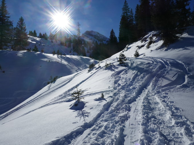 weitgehend unverblasere Pulverschnee