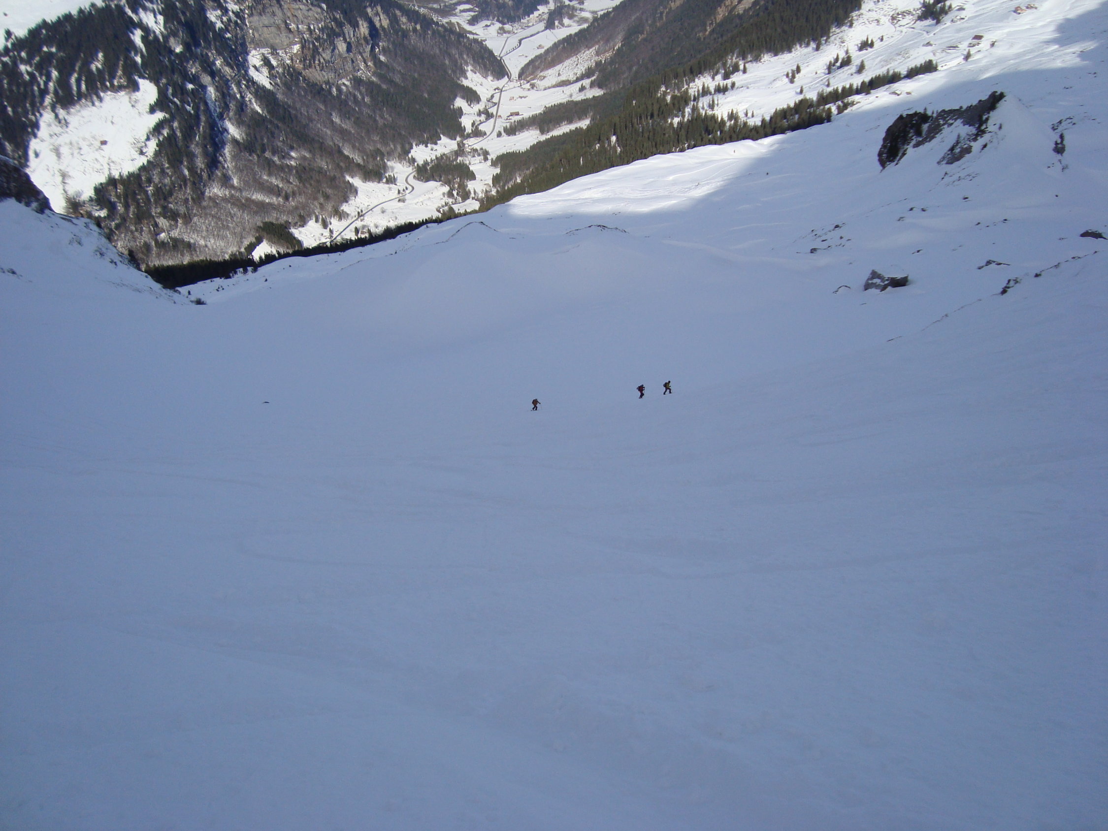 Die Lawinengefahr war heute am Forstberg nicht das Thema. Viel prekärer empfand ich die Gefahr des Abrutschens auf Eis und/oder Lockerschnee im Steilgelände.