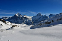 Auch wenn diesmal keine Abfahrt zur Bussalp drin lag (ich wollte nicht ab Bussalp im Bus fahren), die Abfahrt zurück zur First und weiter nach Grindelwald versicherte wenigstens um die 1600m Abfahrvergnügen, zuoberst im Pulver (!) und ab First teilweise über erstaunlich guten nicht vereiste Piste.