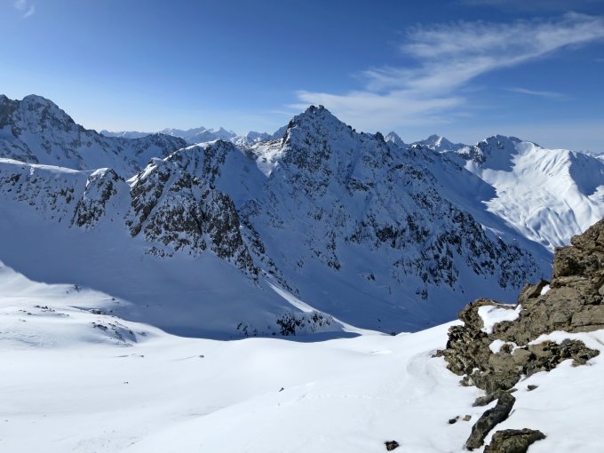 Falls diese Abfahrt oder die Abfahrt durch das Nordcouloir (auch vom Gipfel) nicht gemacht werden kann, ist diese Tour nicht zu empfehlen (Abfahrt via Aufstiegsroute normalerweise komplett verblasen).