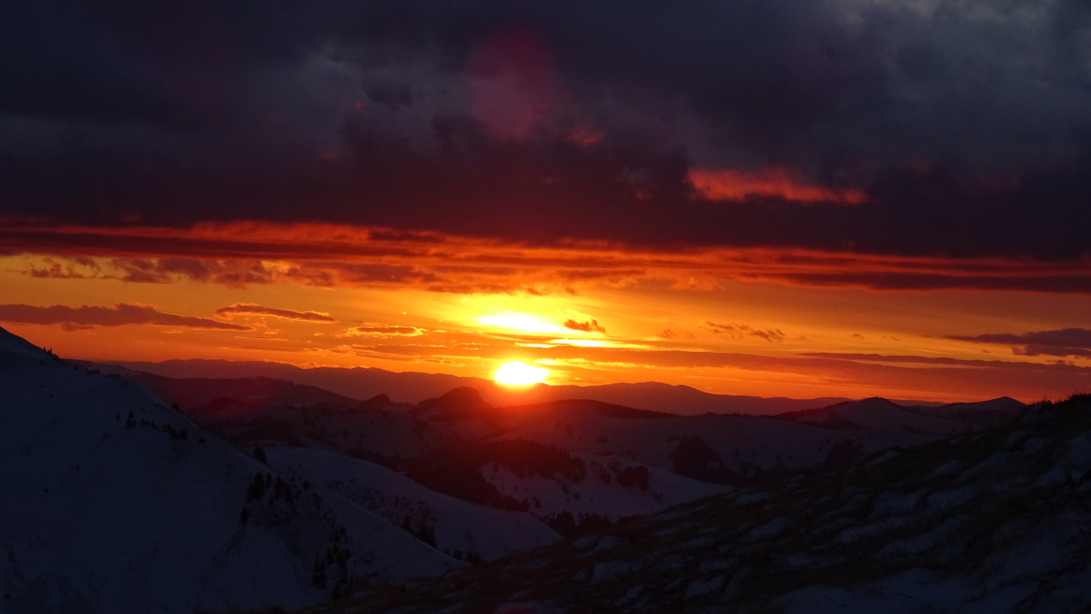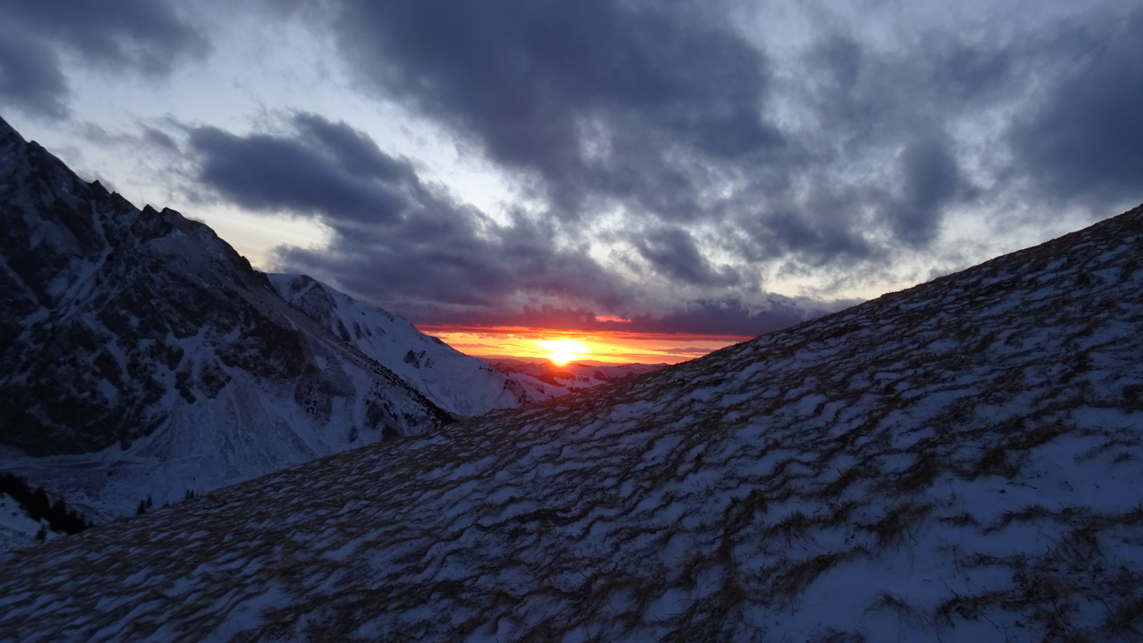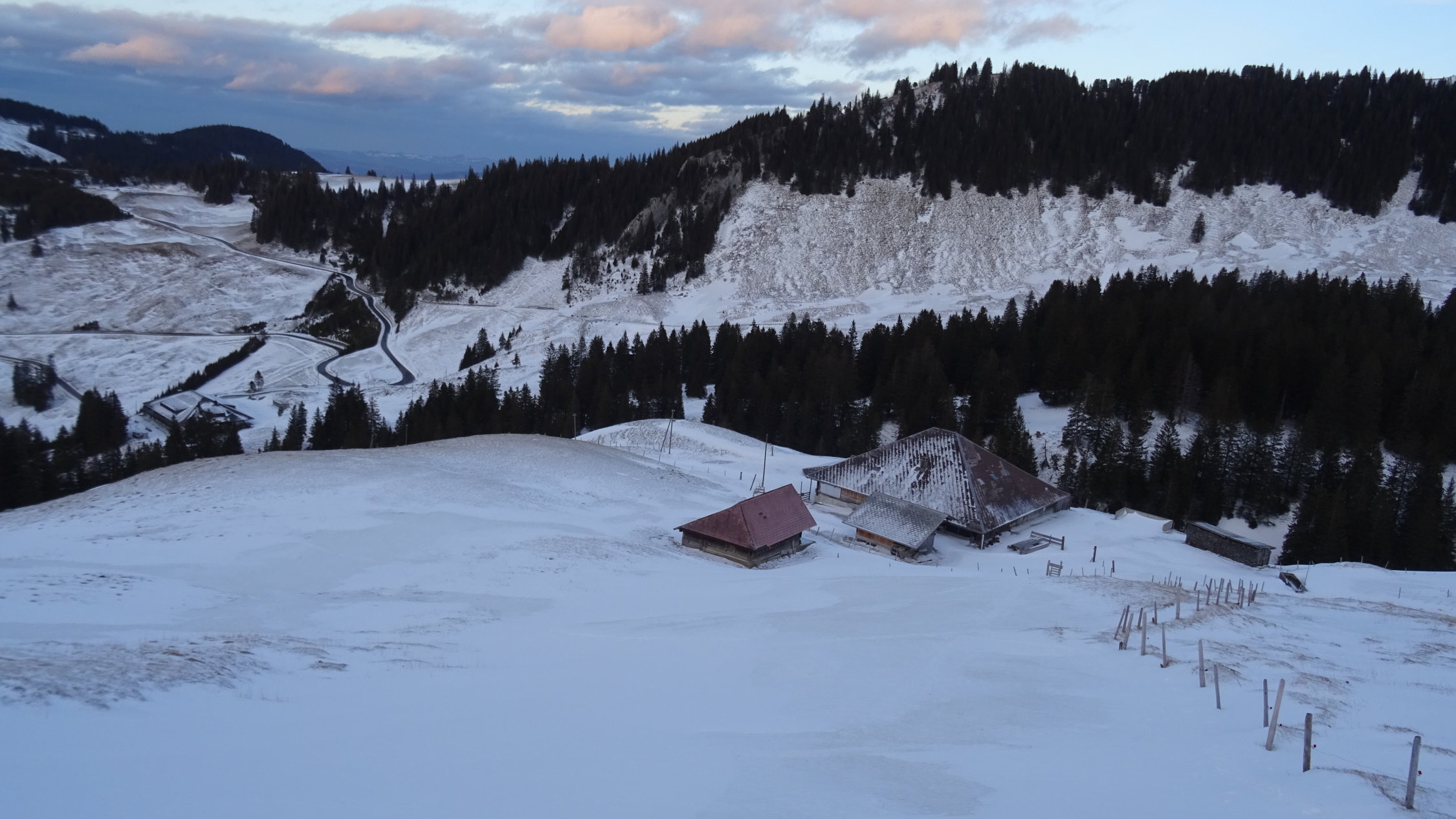 Es liegt zum teil in den Gräben noch eine leichte Neuschneeauflage die wie auf einem Samtenen Teppich zu fahren ist