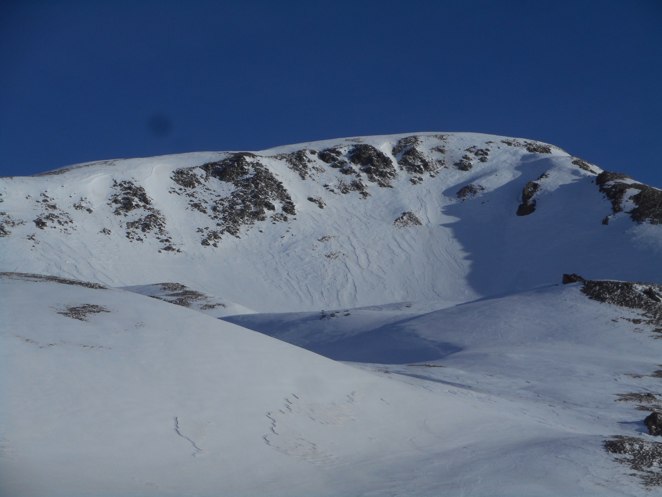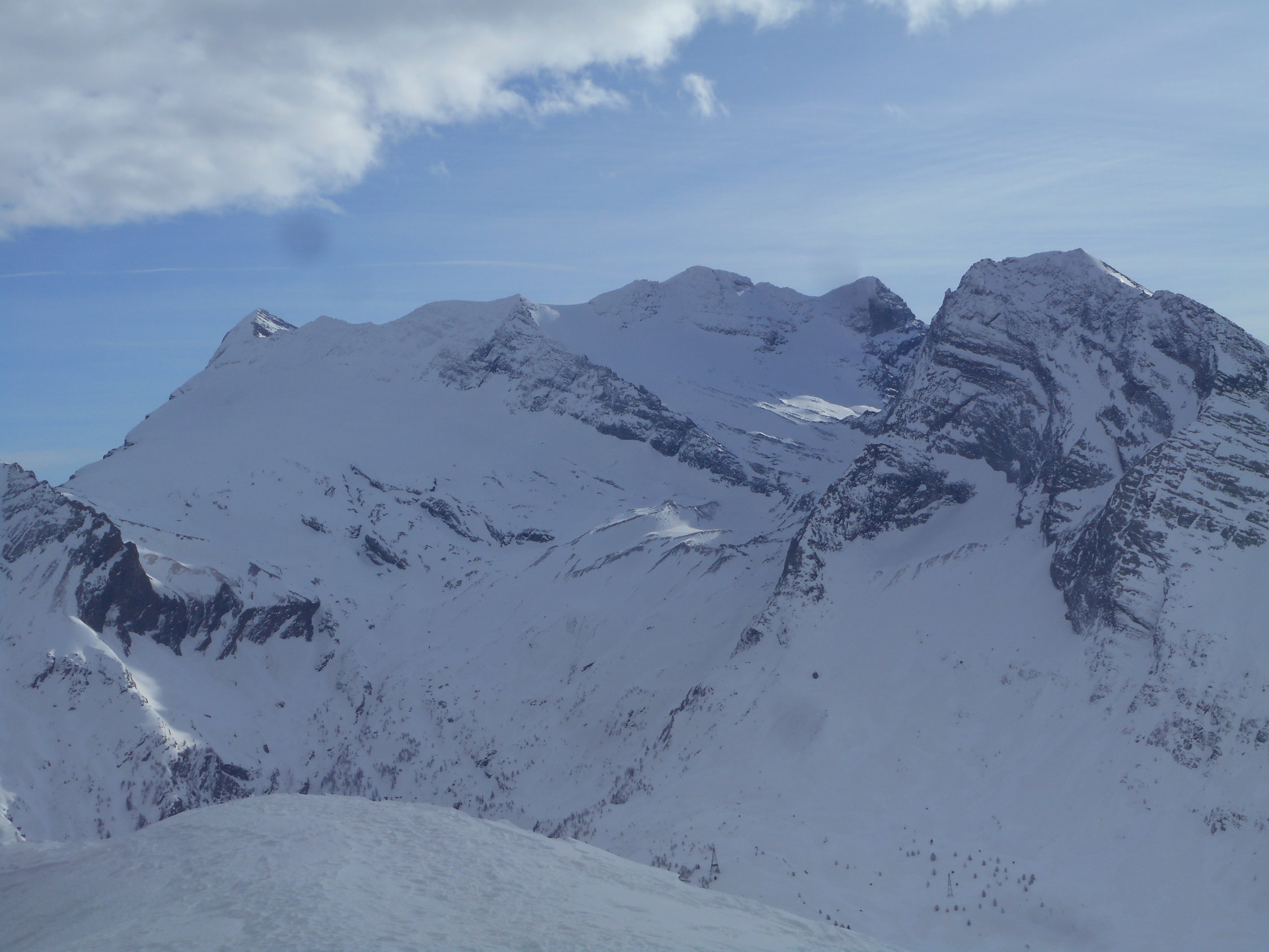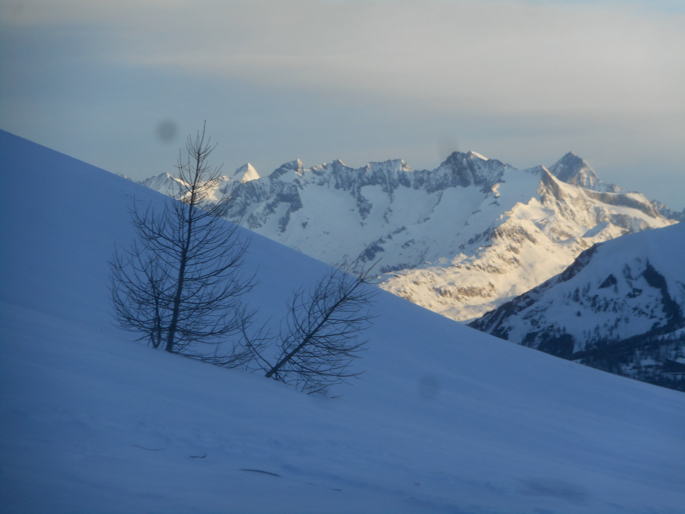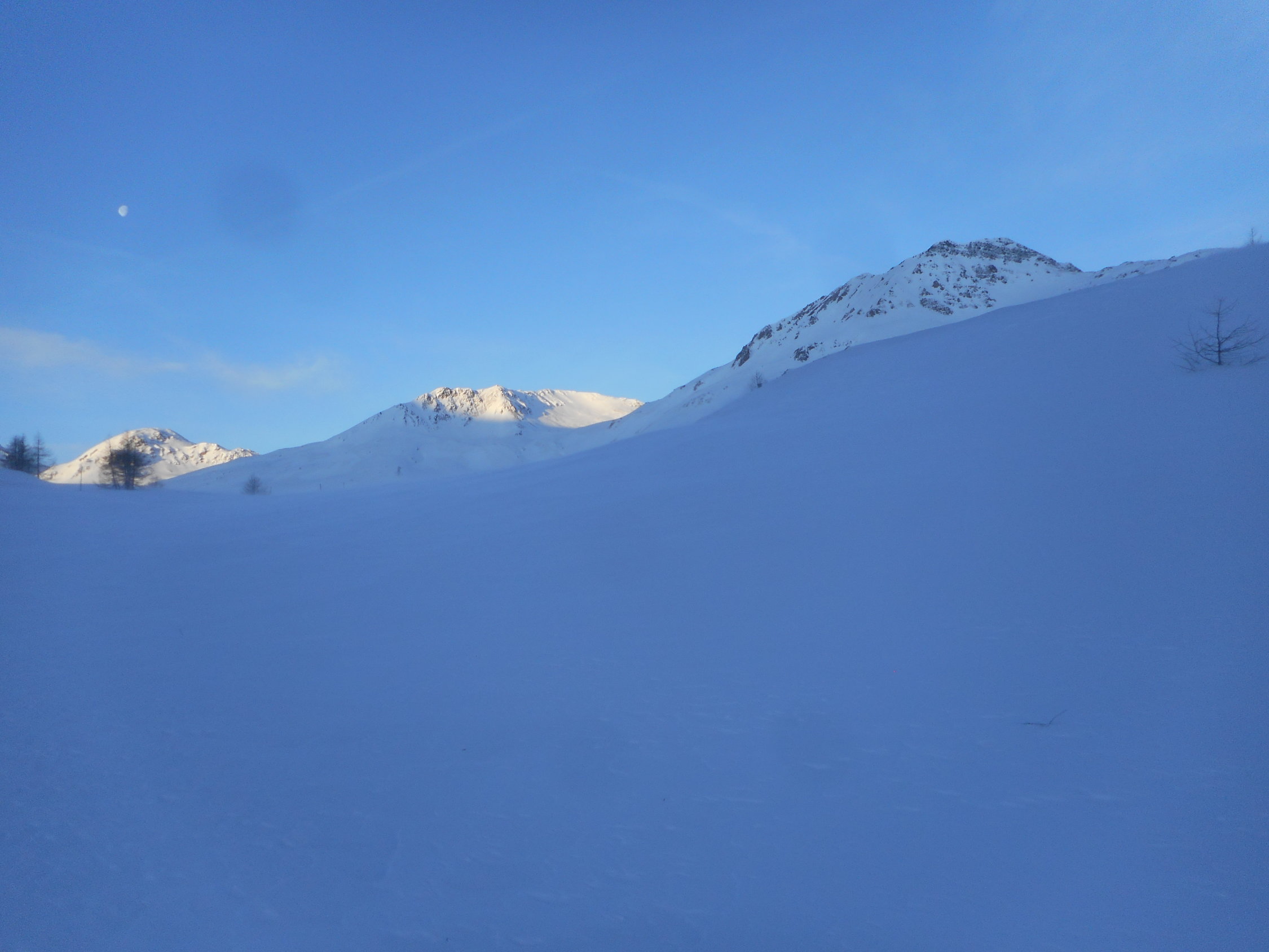 In den Mulden hatte es 10cm bis 20cm hingewehter Pulverschnee auf einer tragenden Unterlage. An den exponierten Stellen wie auf Graten und Südhängen harter und griffiger Firnschnee.