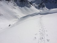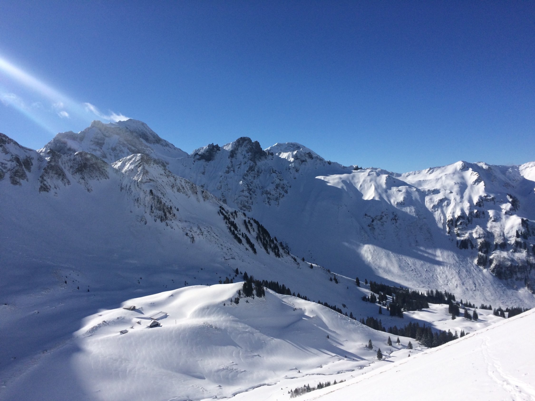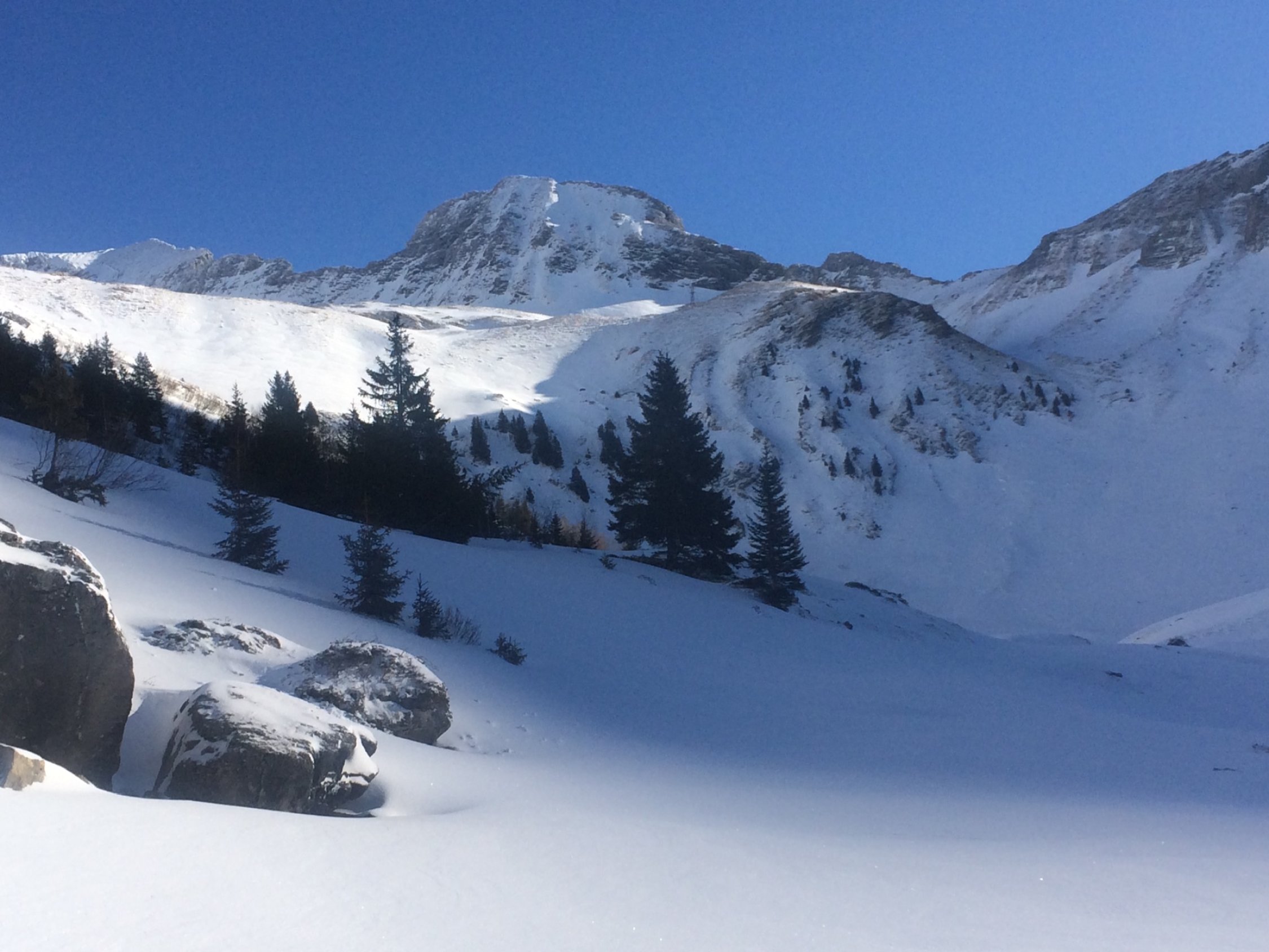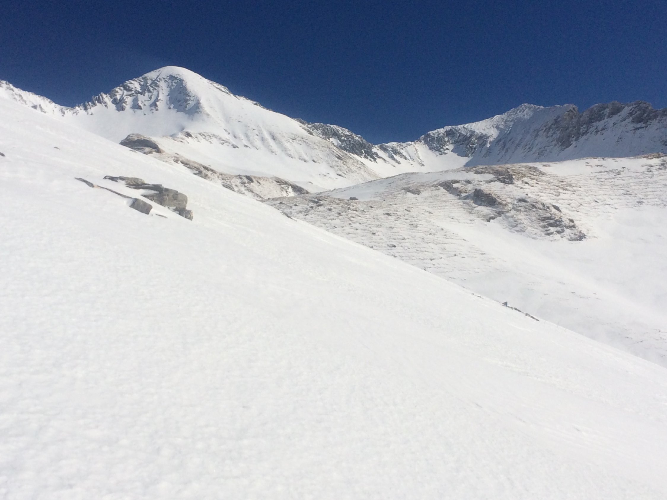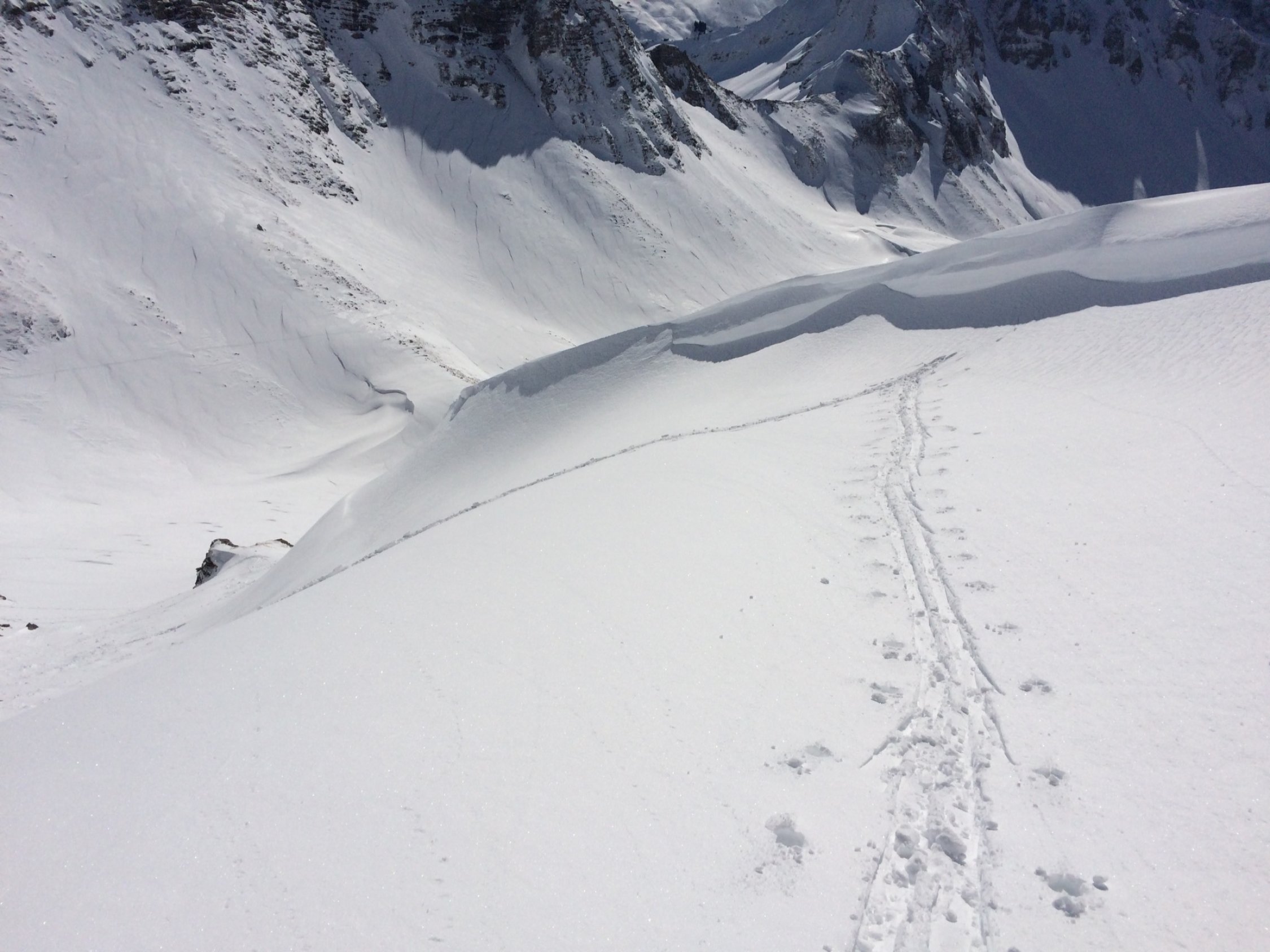 Unten hat es wenig geschneit, circa 5 cm im mittleren Bereich 10cm und oben ca. 20cm Neuschnee, allerdings oben abgeblasen. Ich musste bis zum Gipfel spuren, die letzten 50 Höhenmeter konnte ich mit den Harscheisen nicht mehr gehen und bin gelaufen. Die Abfahrt war nach 100hm wieder OK. Ich habe sogar ein Rudel Gämsen beobachtet -ein Vorteil wenn wenig los ist.