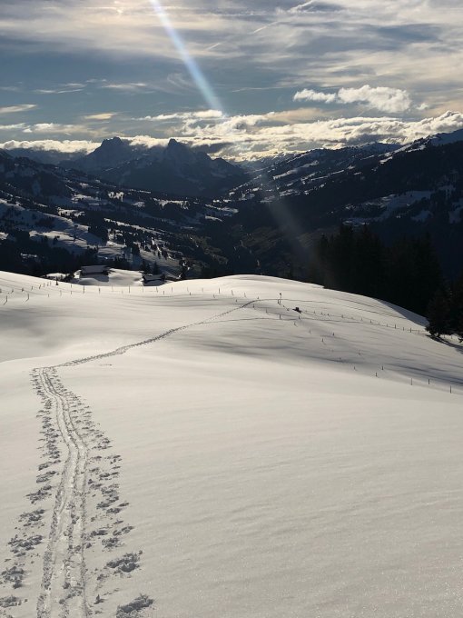 Machbar am Start auf der Gärstere Pkt. 1353, wo am Schatten und auf der Alpstrasse gerade genug Schnee liegt für skitouristische Aktivitäten, und am Gipfelhang, wo nicht nur Sabine gewirkt hat, sondern auch der Neuschnee schon wieder vom Winde verweht wurde. Gütigerweise blieben hier aber noch Altschneereste erhalten, die als Unterlage für eine passable Abfahrt dienen. Den ausgezeichneten Teil bietet die schattige Milchchäle mit 10-15cm unverspurtem Pulverschnee auf fester und glatter Unterlage - top.