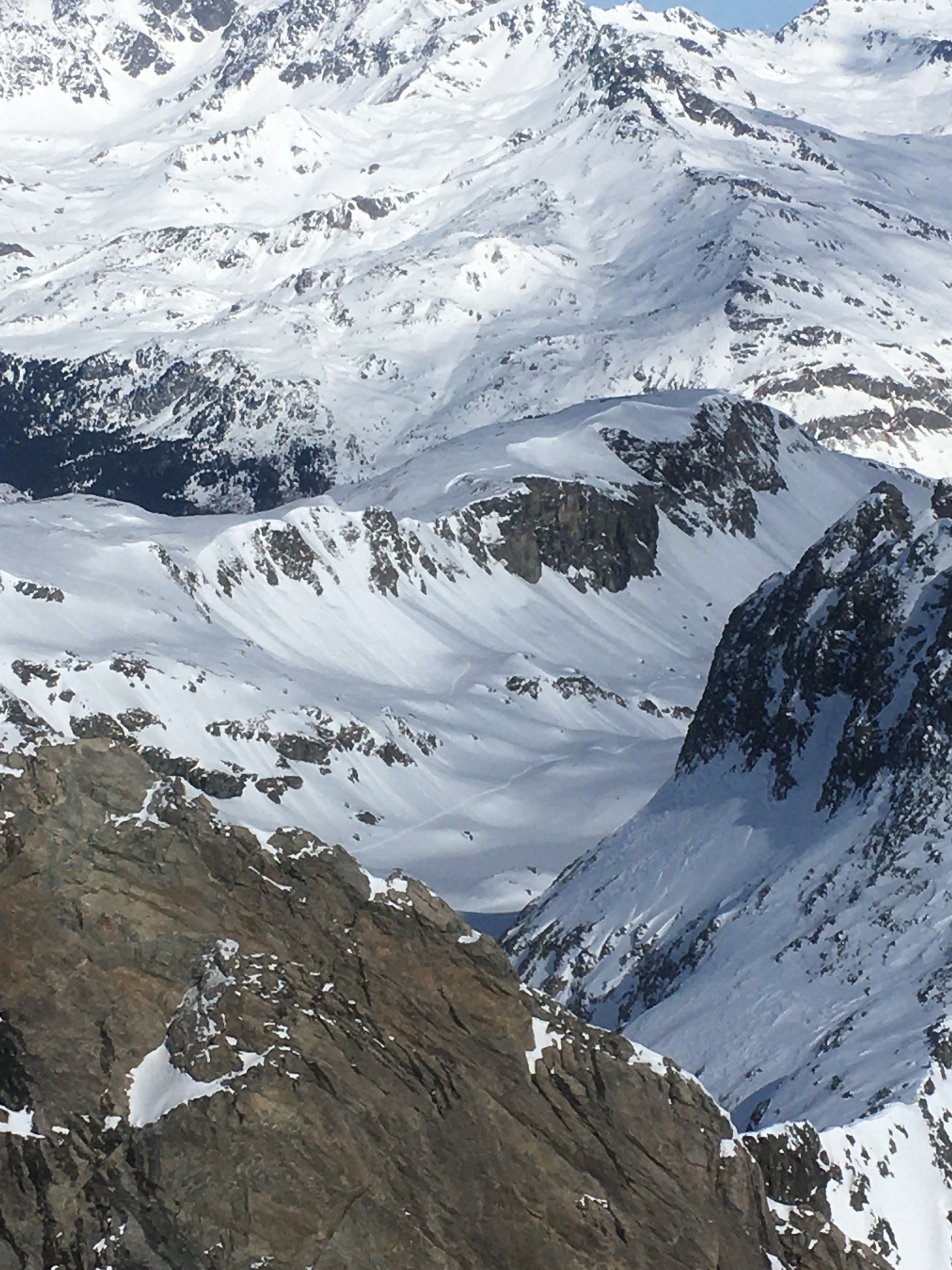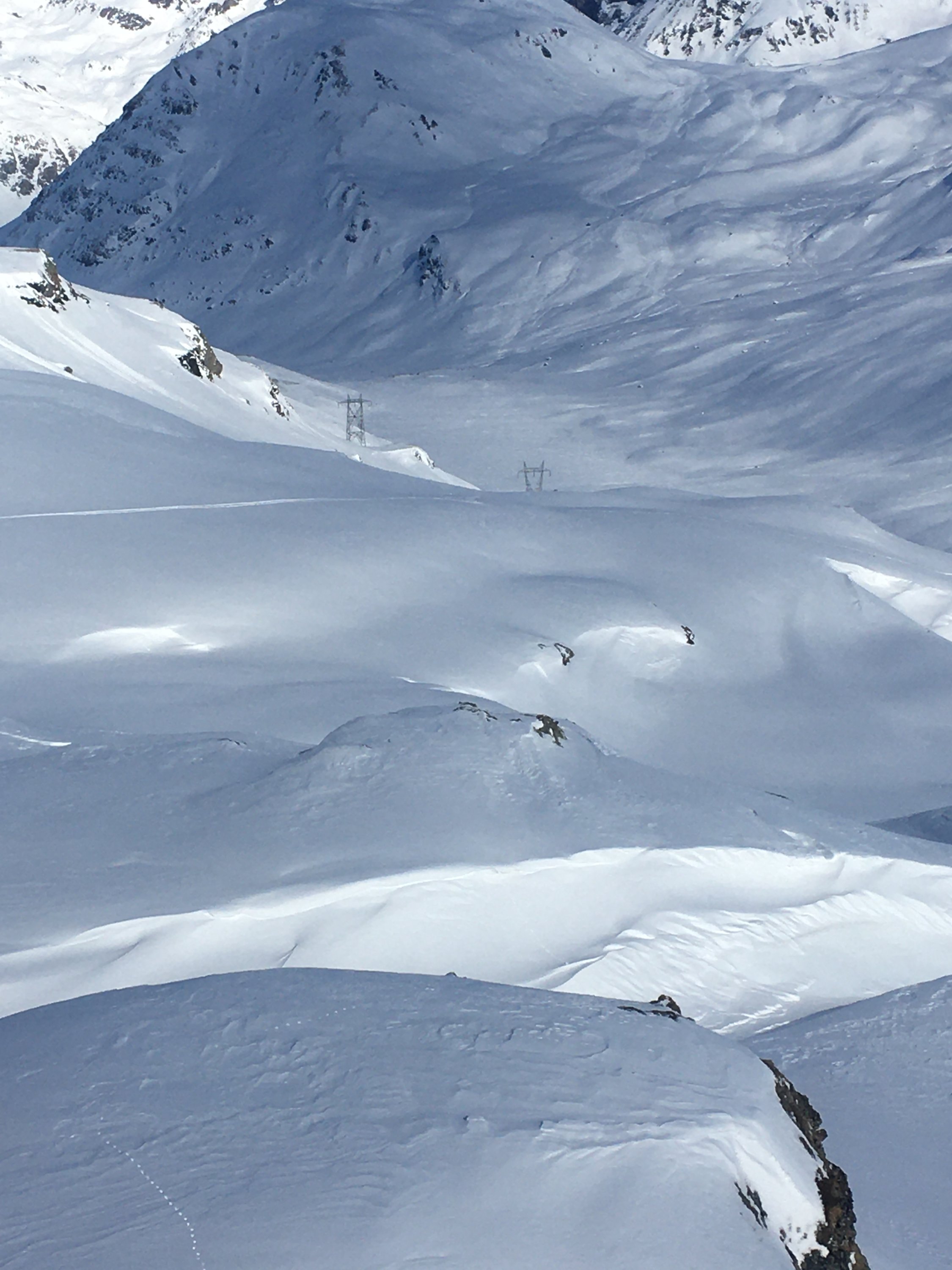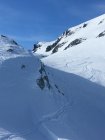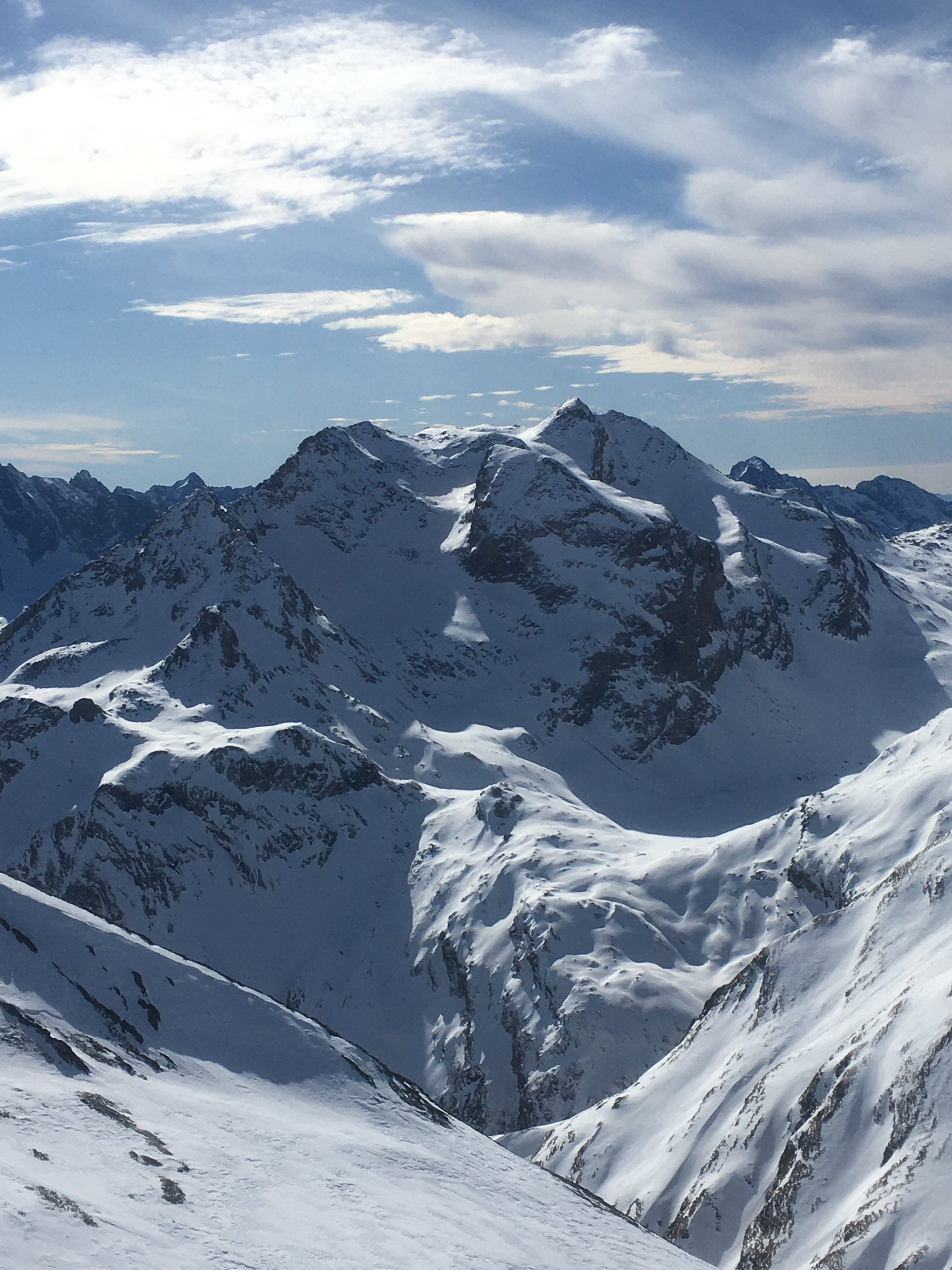 Start Endstation Skilift Mot Scalotta 9.30 Uhr, 0 Grad, windstill. Perfekte Spur durch Kollege Eugen bis zum Gipfel, Vielen Dank. Vor Nordwestflanke zum Grat sehr steil und Harscheisen obligatorisch. Skidepot auf Grat und ohne Steigeisen zum Gipfel. Angenehme Temperatur auf dem tollen Aussichtsgipfel, war alleine oben. Abfahrt im oberen teil teils Pulver, auch einige harte Stellen. Ab Forcellina tolle Verhältnisse im Schatten Richtung Curegia und weiter unten längere Traversen Richtung La Motta. Nachher bei Vadval vorbei und auf dem Strässchen nach Bivio. Vielleicht etwa 20 Tourengänger unterwegs, Roccabella wurde auch fleissig besucht inklusive Nordabfahrt. Einige Tourengänger auf dem anspruchsvollen Piz Mäder, den Gipfel sieht man schön vom Gipfel des Piz Turba. Südhänge schon leicht gedeckelt.