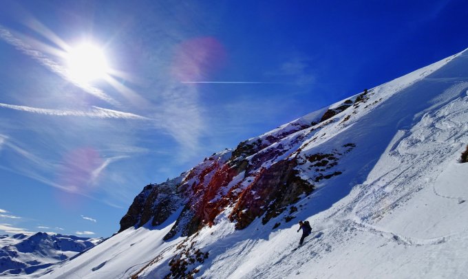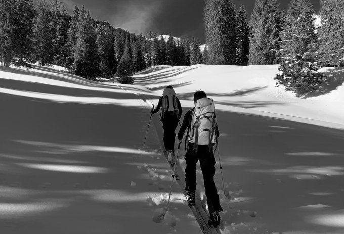 Im Aufstieg über den Schwarzenberg sind wir im Bruchharsch gelaufen. Mit jedem Höhenmeter wurden die Schneeverhältnisse besser. In der Abfahrt sind wir zum grossen Teil Pulverschnee gefahren. Lediglich im Mittelteil musste mit leichtem Harsch gekämpft werden. Unter war der Deckel bereits aufgeweicht und liess sich ganz gut fahren.
