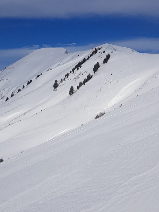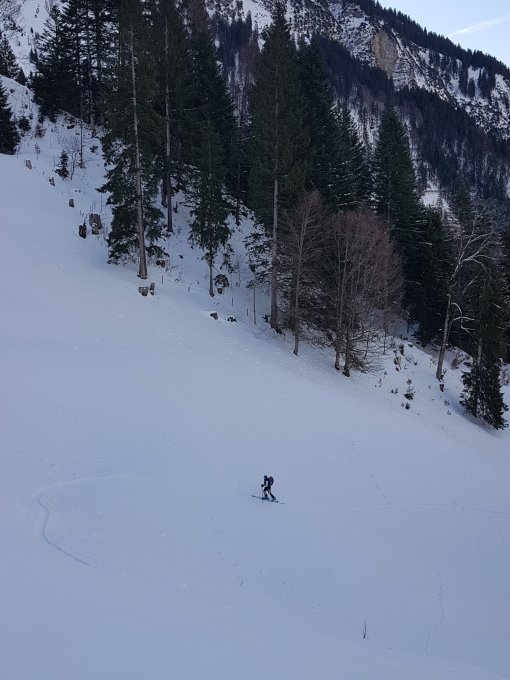 Wald u.bis Alpe dank Neuschnee. Ab Alpe bis zum Häfnerjoch wenig Schnee da abgeblasen