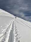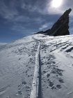 Dank den guten Wetterverhältnissen gab's viele Menschen im Gebiet. Die Spuren sind gelegt, allerdings wegen den ausgiebigen Schneefällen der letzten Tage sind sie ziemlich tief und eng.