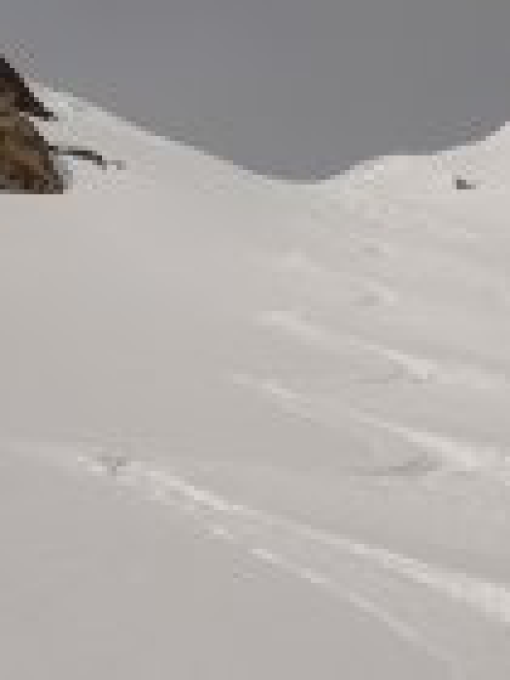Sehr gute Verhältnisse, man kann mit Ski gut in den Sattel südlich von Punkt 3165m hochsteigen.