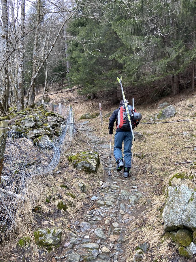 In Dalpe so gut wie kein Schnee. Ab Polpiano genügend Schnee zum Ski anschnallen, im Wald aber hart und ruppig - in der Abfahrt hab ich hier lieber abgeschnallt. Fluss vor der Hütte in weiten Teilen nicht ausreichend eingeschneit für eine Überquerung, weit oben oder unten aber gut möglich. Übernachtung in der Hütte. Das erste Aufstiegscouloir ist sehr gut eingeschneit für Aufstieg mit Ski. Zweites Couloir knapp genug Schnee, 2 kleine Felsstufen müssen überklettert werden (Steigeisen und Pickel hier sehr hilfreich). Gipfelaufbau überwiegend abgeblasen (Harscheisen). Schöner Powder in der Abfahrt. Die offizielle, in der Karte eingezeichnete Abfahrt ist meines Erachtens nicht möglich, wir sind über das Seeli abgefahren (Achtung Wildschutzgebiet). Das Abfahrtscouli ist gut eingeschneit - Abfahrt direkt auf Ski möglich. Unter 1600Hm ist die Abfahrt momentan kein Vergnügen mehr.