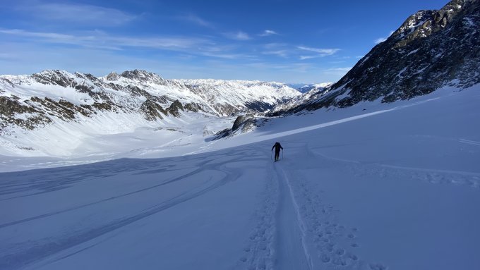Recht gute Verhältnisse. Teilweise noch guter Pulverschnee. Vorsicht zum Teil noch Steinkontakte.
