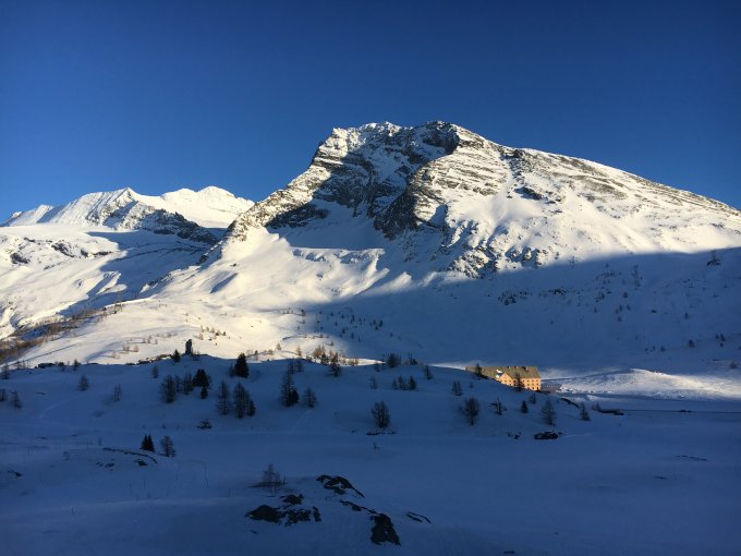 Wir sind umgekehrt, weil wir keine Steigeisen dabei hatten und der Aufstieg wegen der harten Schneedecke zu gefährlich gewesen wäre.