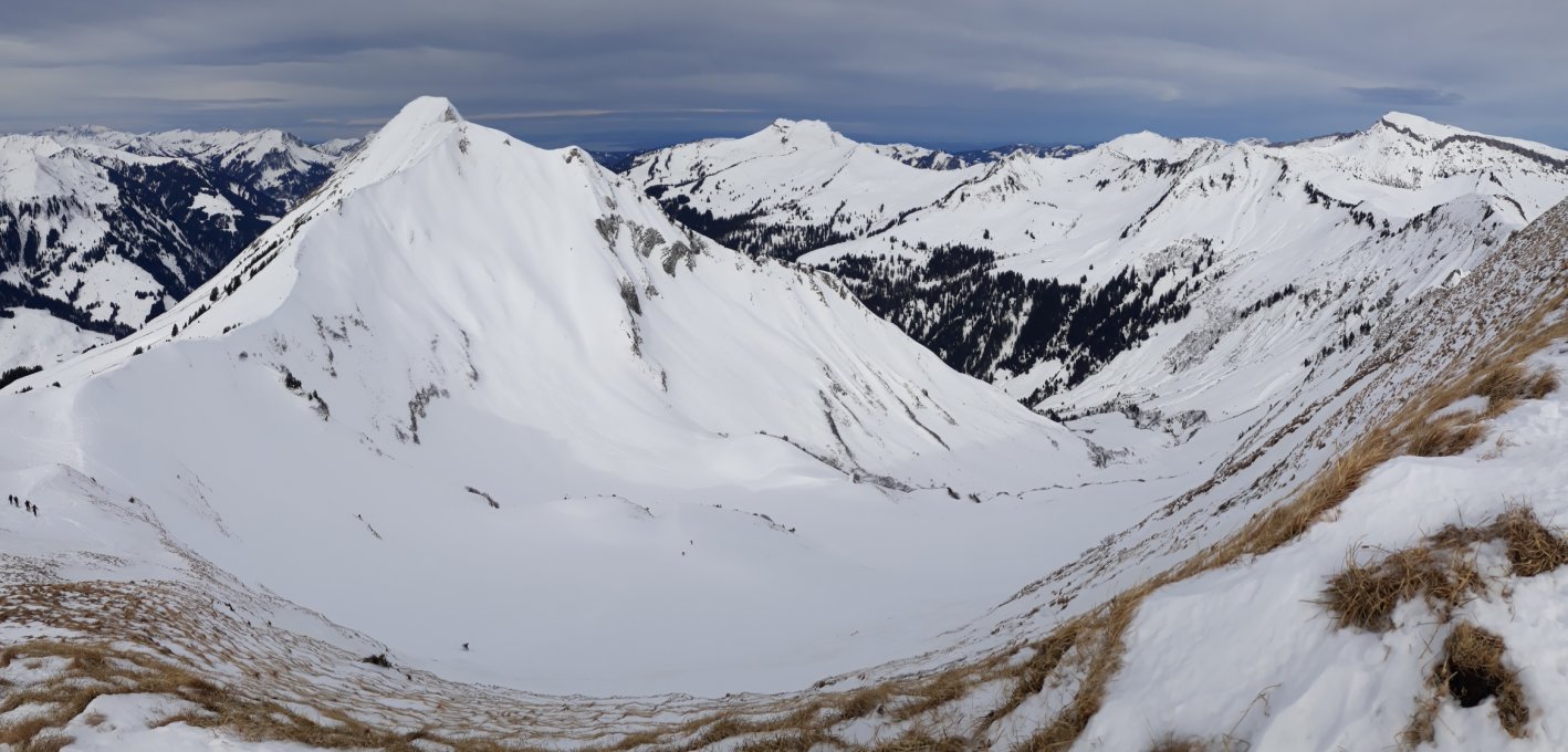 Wir sind von Baad los, der Aufstieg war OK, den letzen Gipfelhang sind wir auf dem linken Rücken hoch, die Ski z.T. gertagen, ging super.