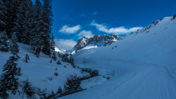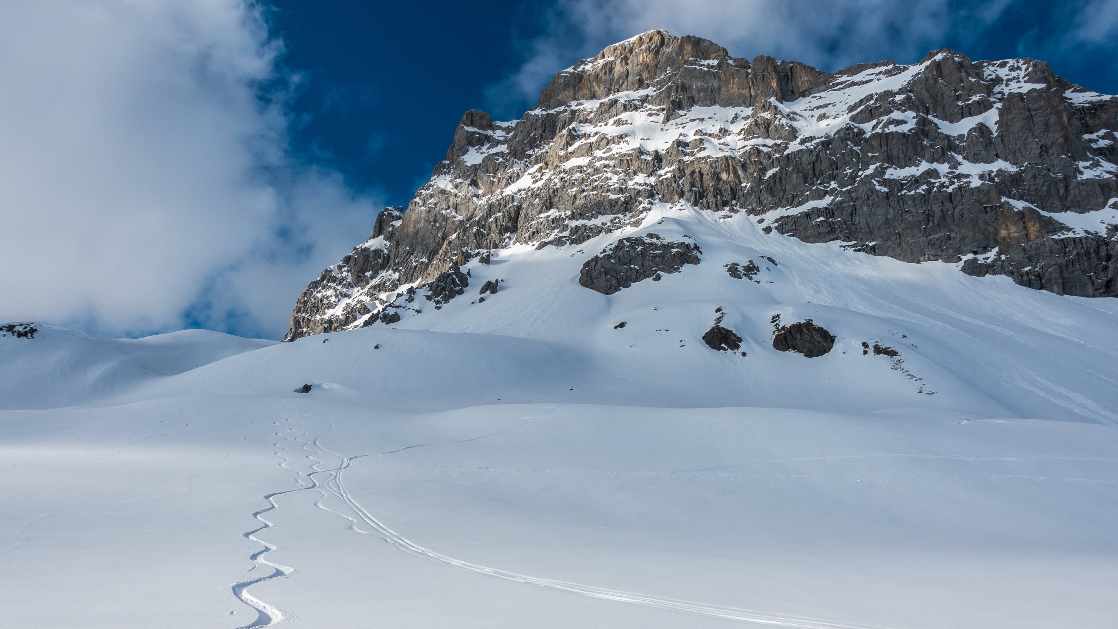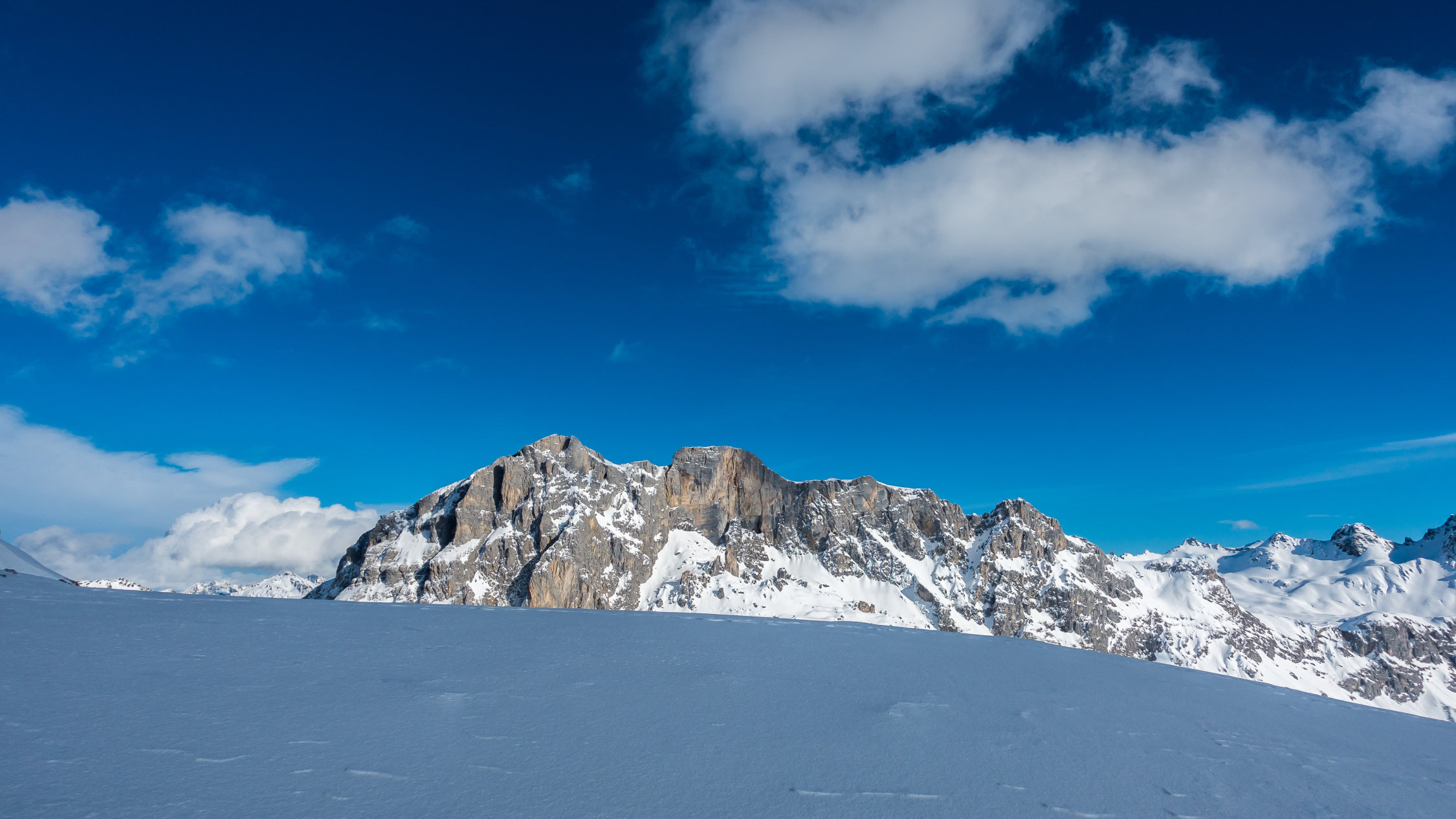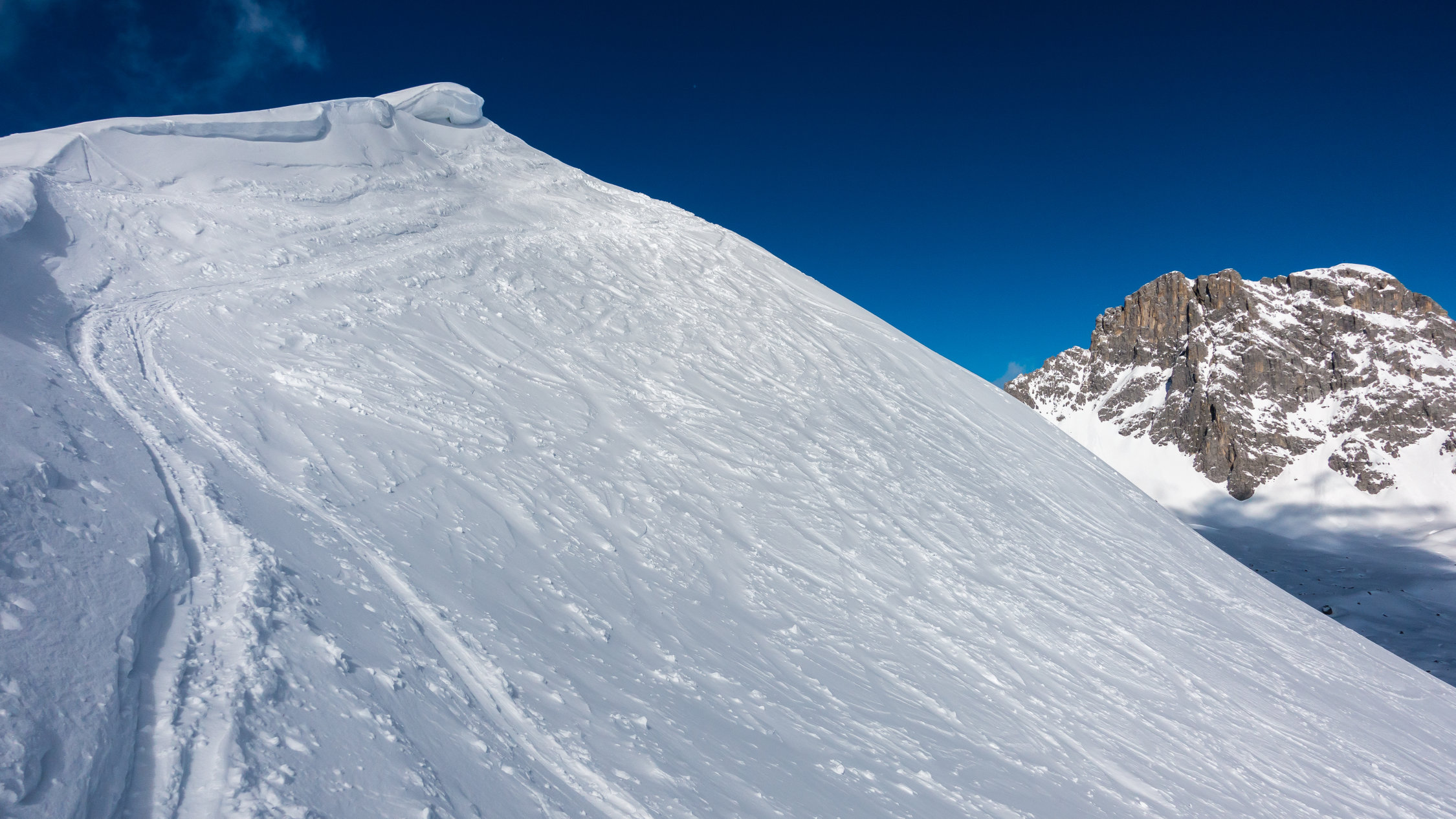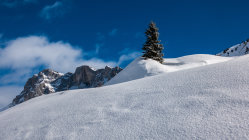 Start um 10 Uhr beim letzten Parkplatz vor Partnun bei -3°, windstill, sonnig mit Wolkenfelder. Über Nacht ist ein dünnes "Schümli" Neuschnee gefallen. Angenehmer Aufstieg, auf dem Gipfel kalter Wind. Abfahrt über steilen Nordosthang vom Gipfel, hier noch schöner Pulver. Anfellen und Aufstieg über Brunnenegg bis zum Fusse der Sulzfluh (2290 m), Abfahrt über die schönen Hänge nach Partnun, hier knapp tragender, gefrorener Deckel.