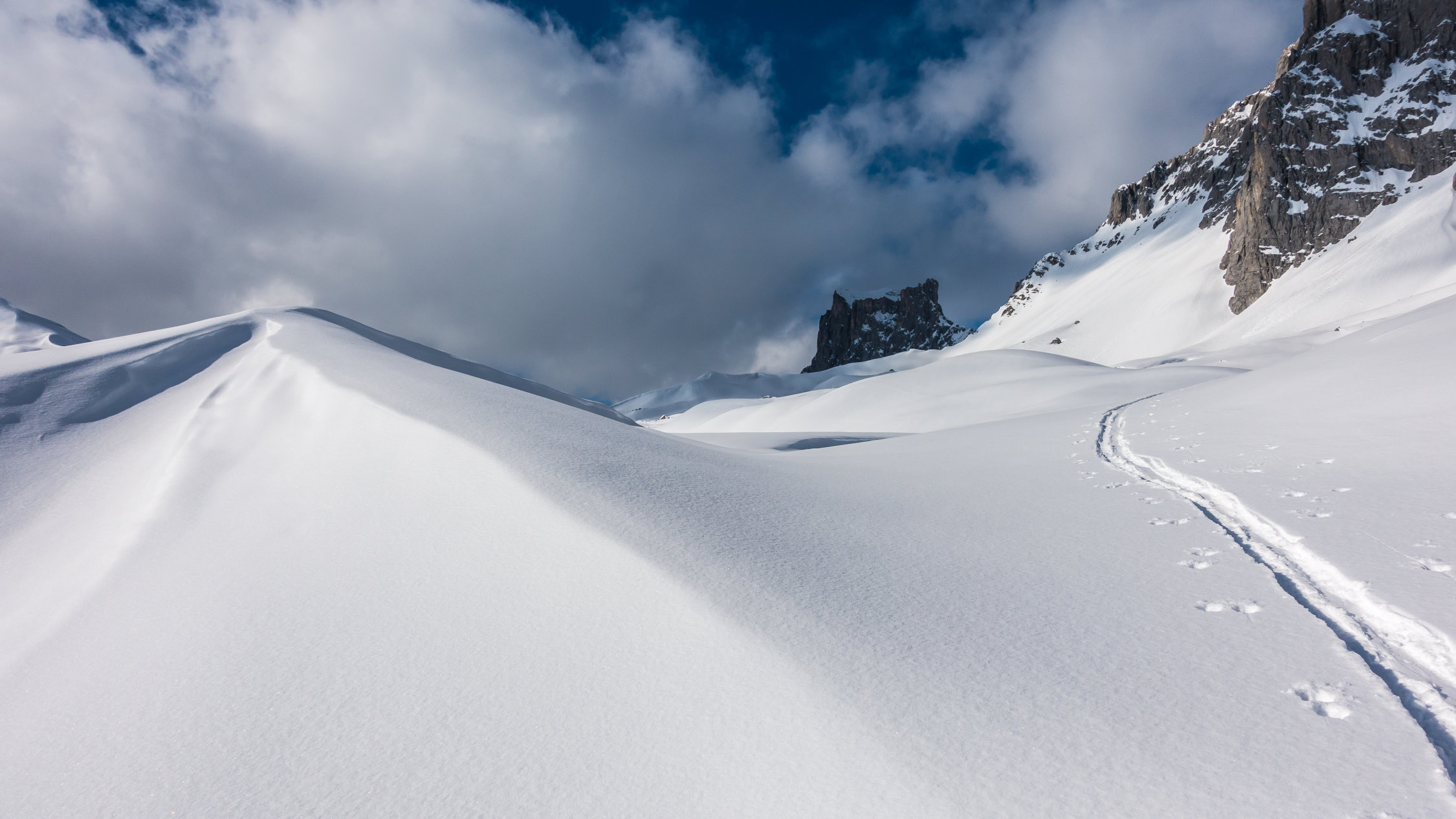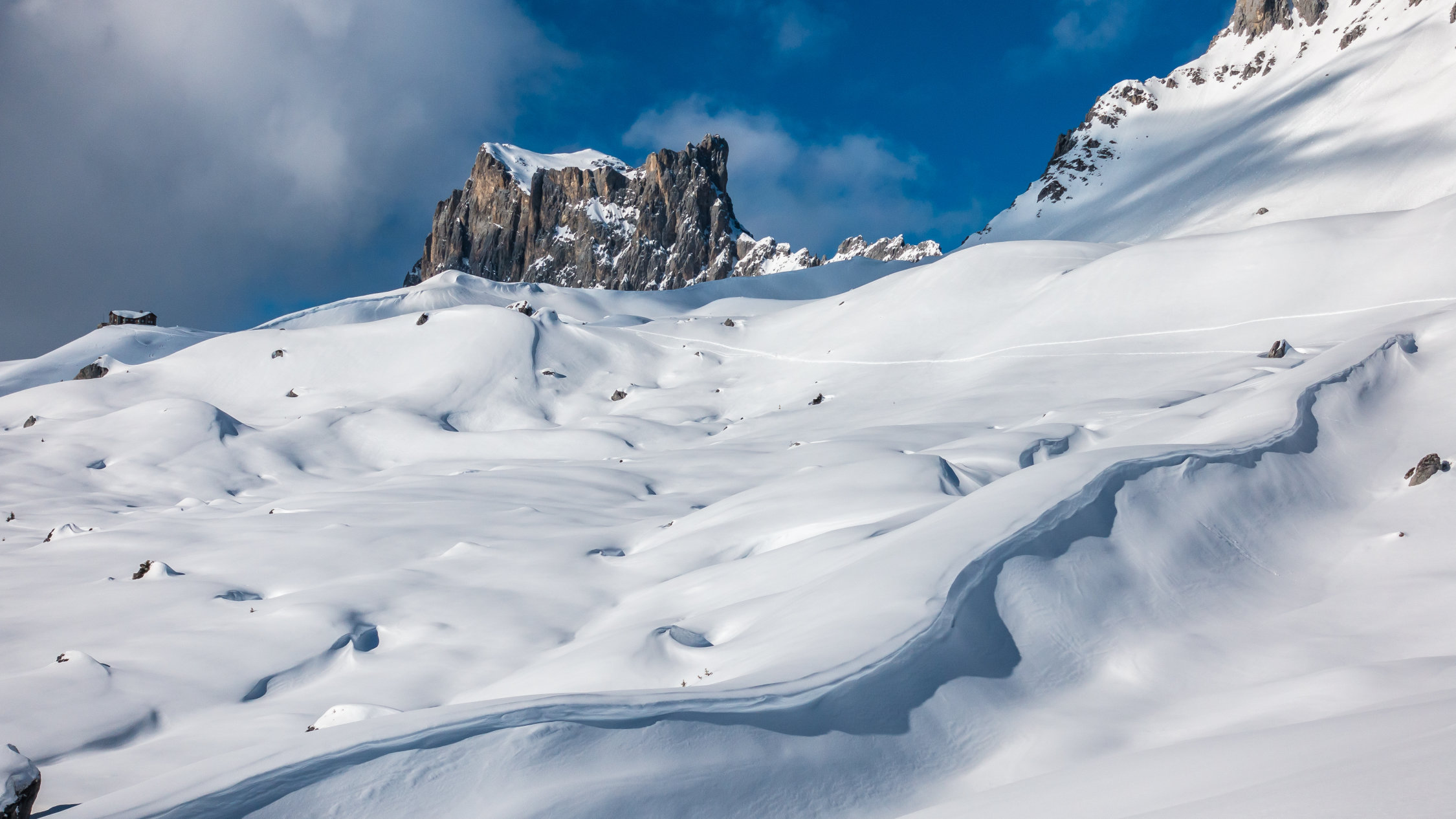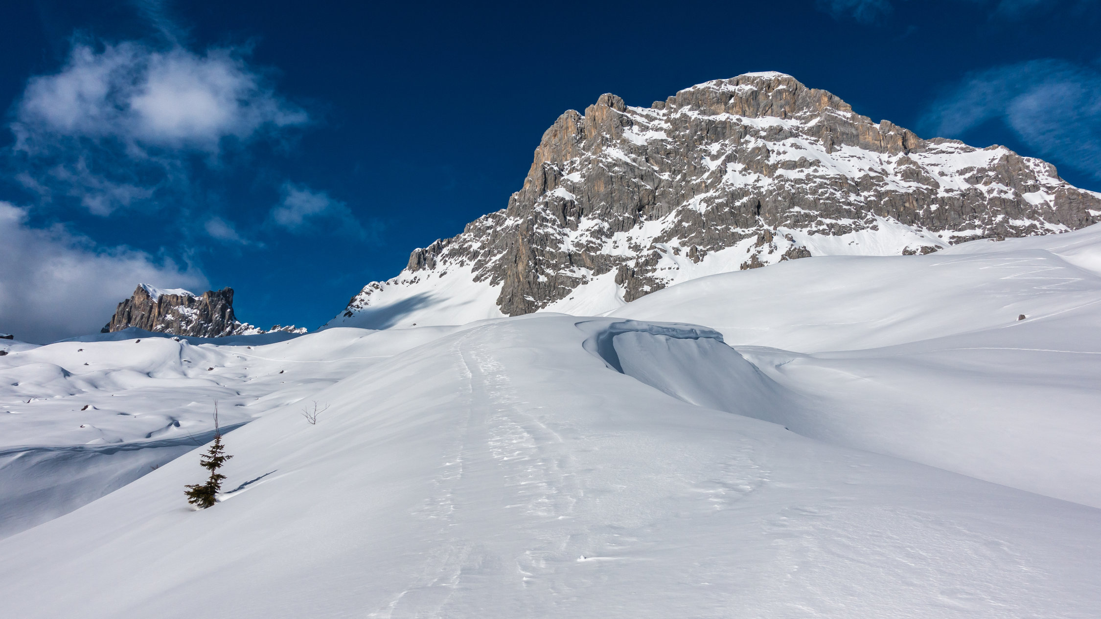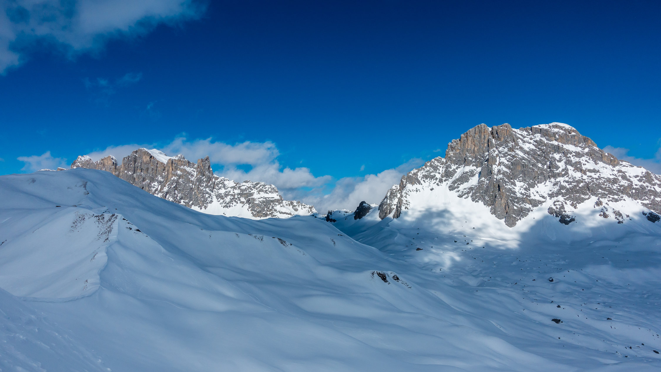 Start um 10 Uhr beim letzten Parkplatz vor Partnun bei -3°, windstill, sonnig mit Wolkenfelder. Über Nacht ist ein dünnes "Schümli" Neuschnee gefallen. Angenehmer Aufstieg, auf dem Gipfel kalter Wind. Abfahrt über steilen Nordosthang vom Gipfel, hier noch schöner Pulver. Anfellen und Aufstieg über Brunnenegg bis zum Fusse der Sulzfluh (2290 m), Abfahrt über die schönen Hänge nach Partnun, hier knapp tragender, gefrorener Deckel.