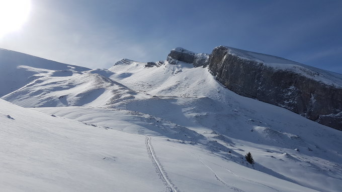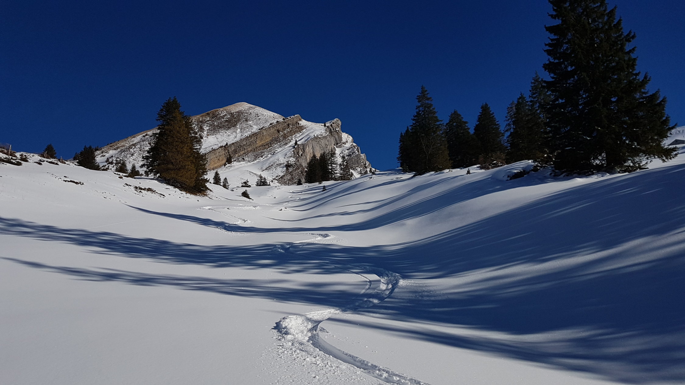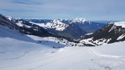 sehr wenig Schnee, trotz etwa 10 cm Neuschnee, der aber am Nachmittag vielerorts schon wieder weg war. Ganz oben ist die Abfahrt nur in der Mulde möglich, sonst überall Steine. Unterhalb ca. 1800 m ein paar schöne Schwünge im frischen Pulver. Abfahrt von Tannibüel grenzwertig, nur noch dem Strassenrand entlang auf dem Restschnee.