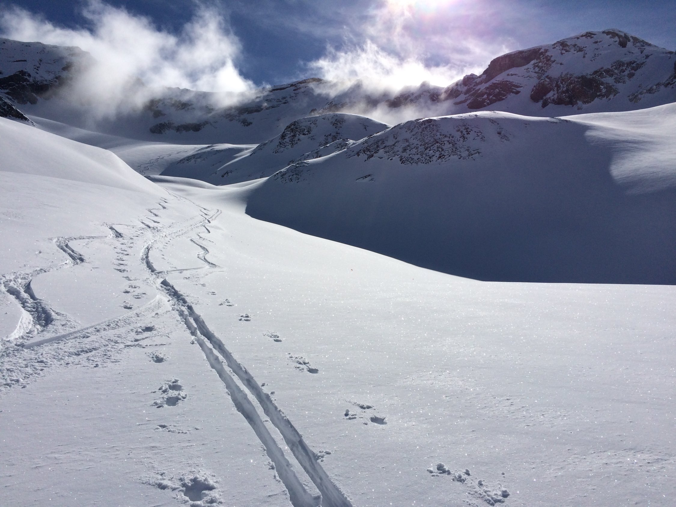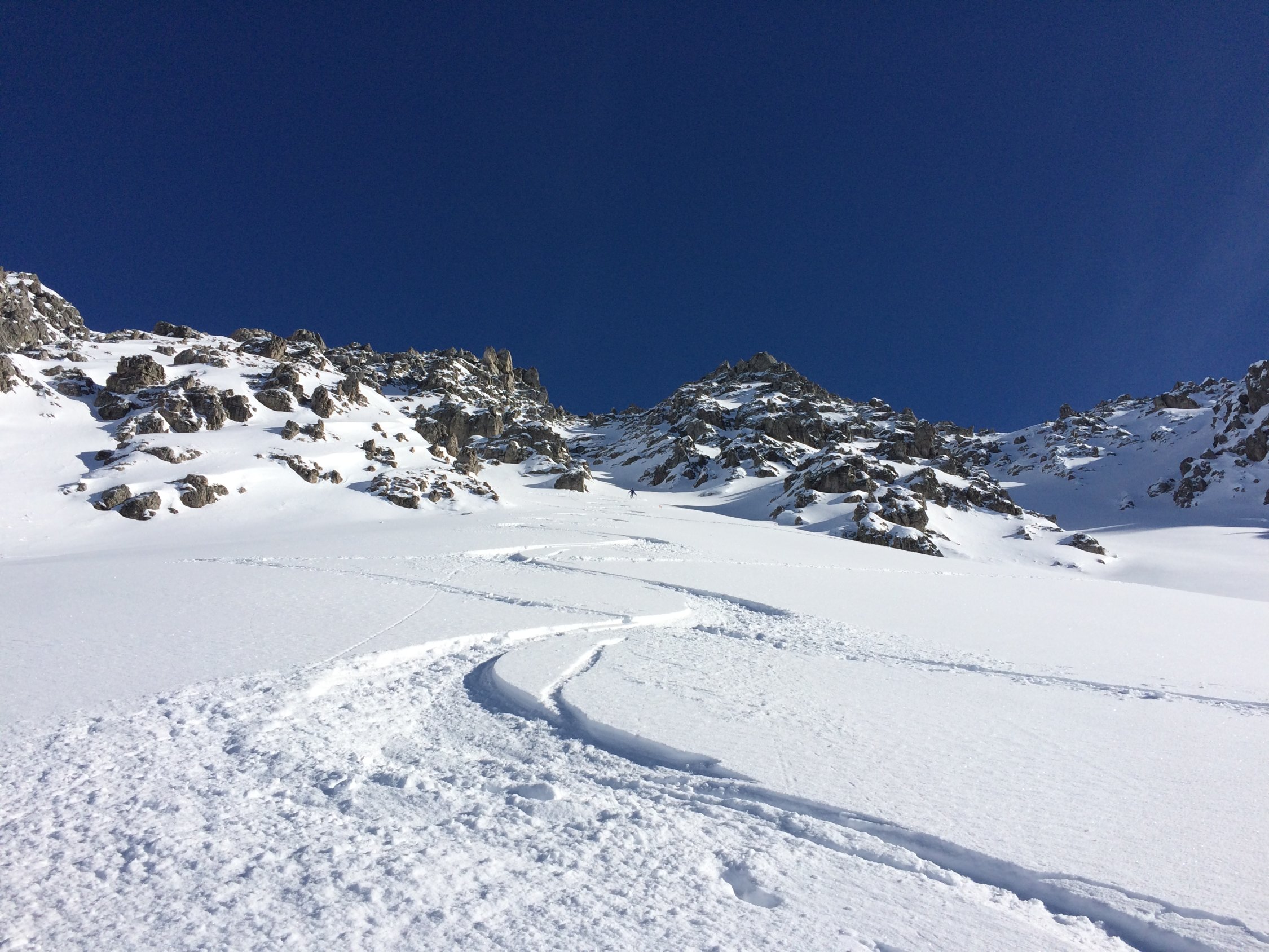 Sind von der Inneren Alpen nochmals links 600hm auf gestiegen bis unter die Felsen vom Gipshorn um den feiner Pulver zu geniessen. Total 2240hm