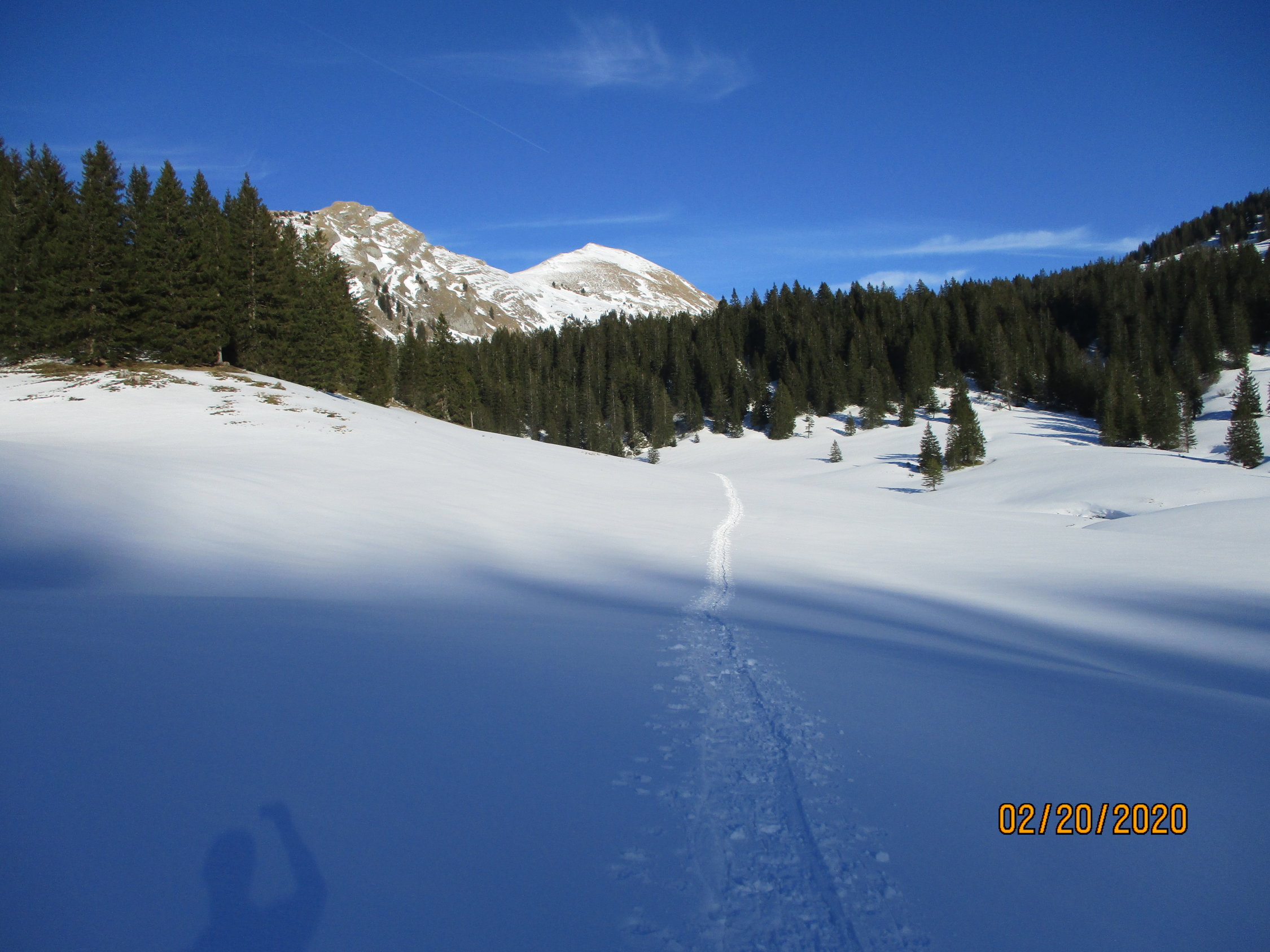 Da ich per ÖV mit Tageskarte unterwegs war, ließ ich mich von meiner Kompaß-Karte zu einer Übergangsmöglichkeit nach Mellau verleiten. Das ließ sich landschaftlich zunächst äußerst entzückend an, doch gab es später Probleme beim Abstieg. Dazu gesellte sich aufgrund meines späten Aufbruchs (Anfahrt) ein gewisser Zeitdruck.