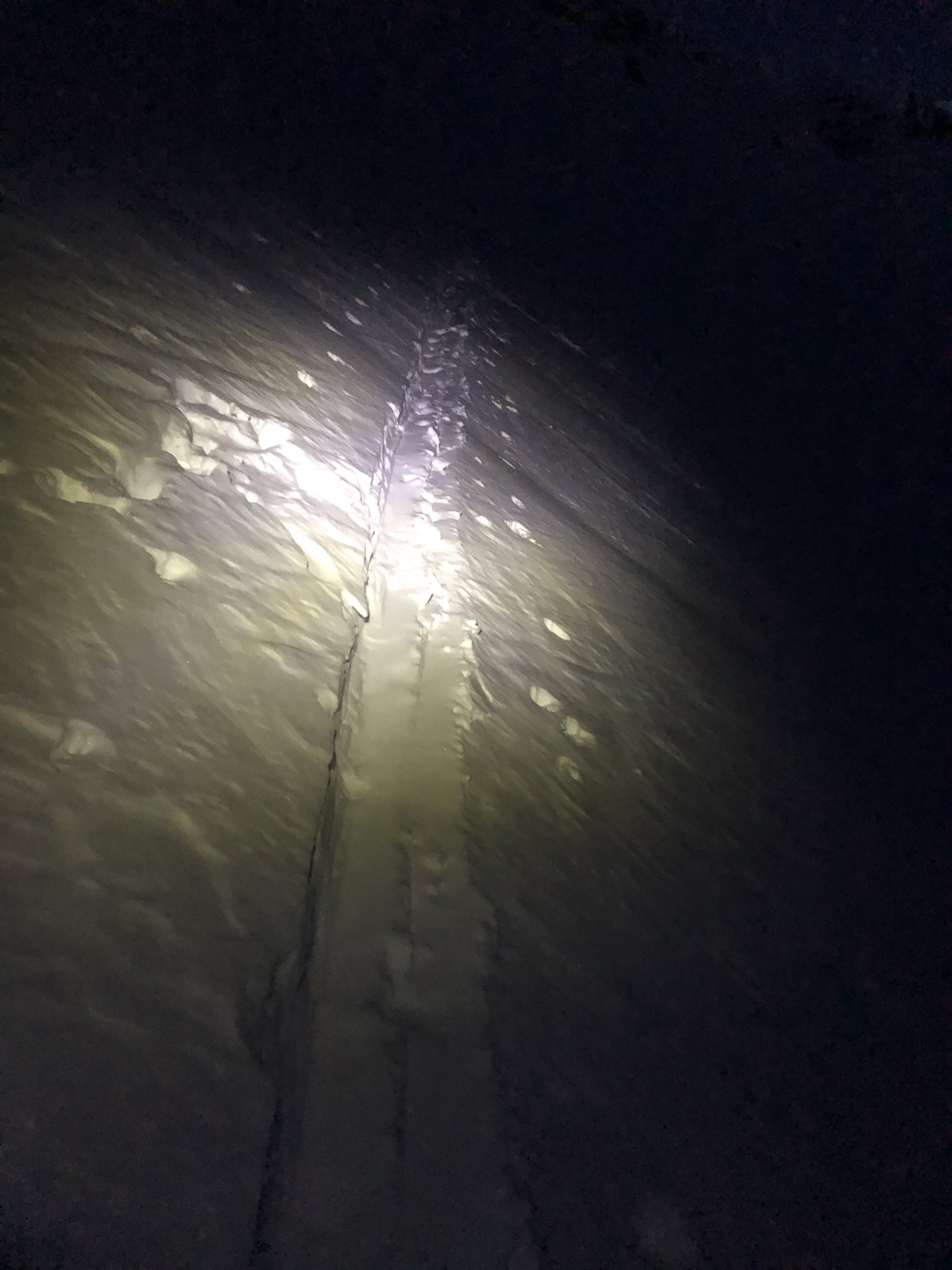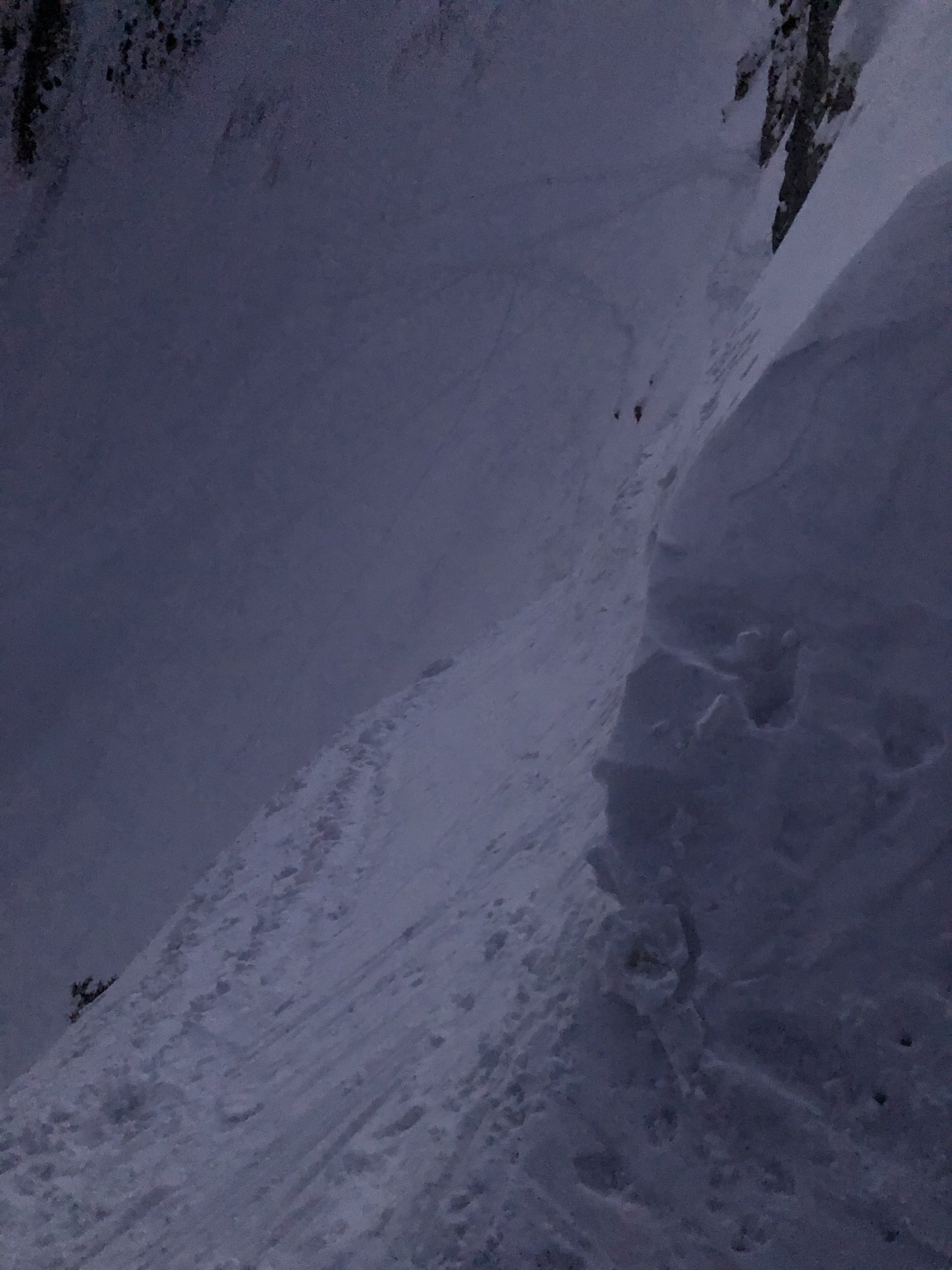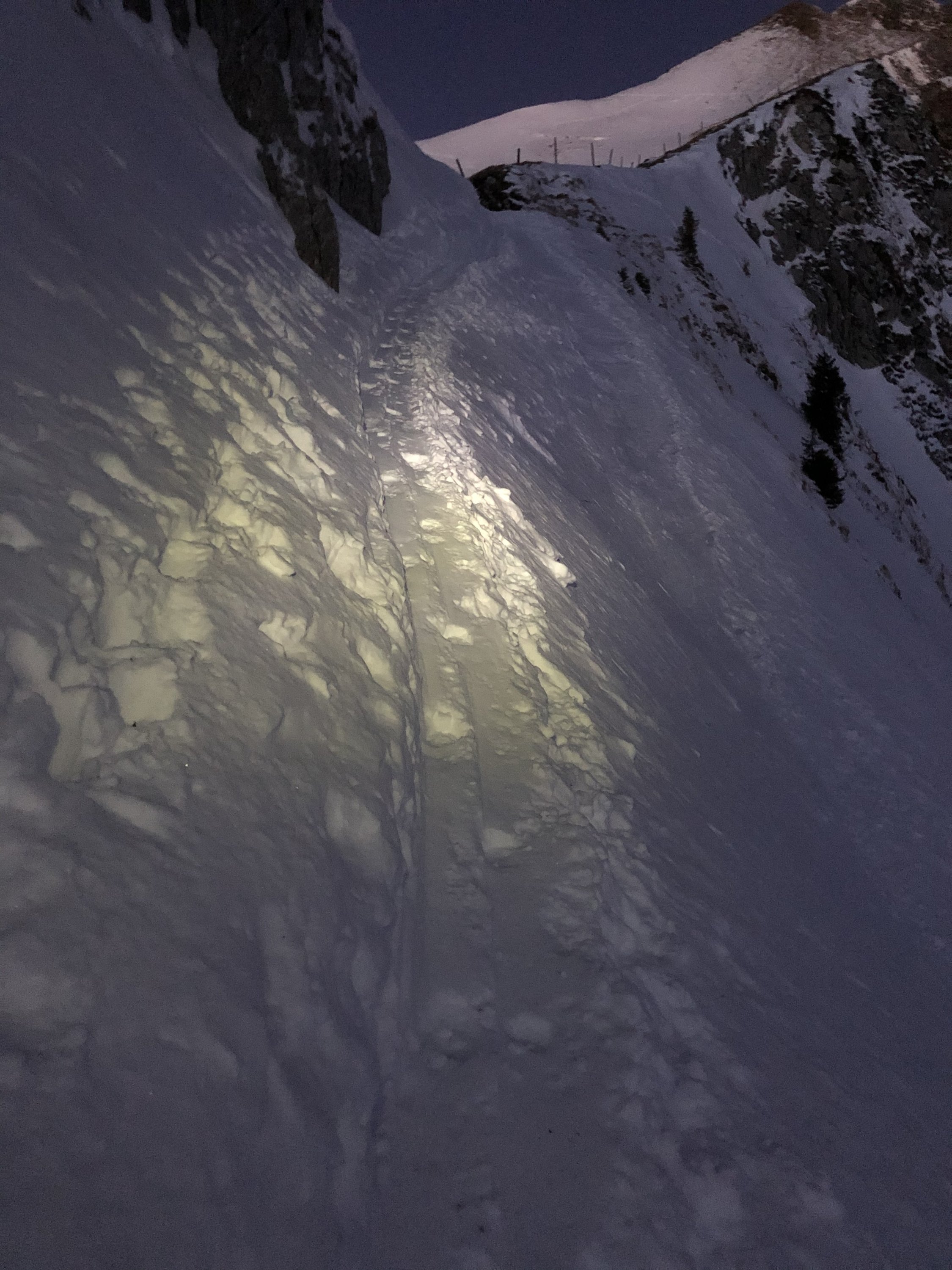 Bis kurz vor Chummlihütte hart Schnee und zum teil eisig.