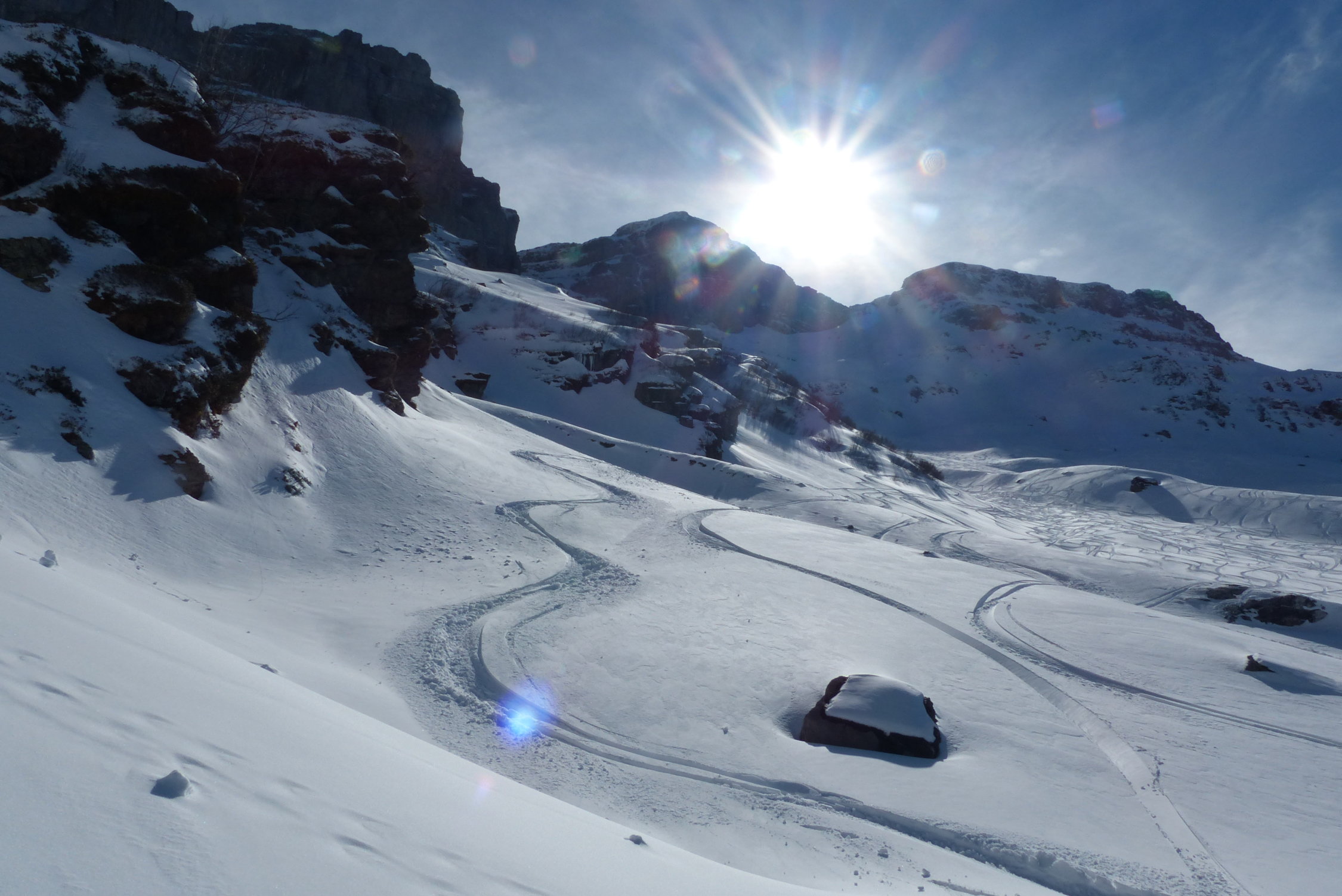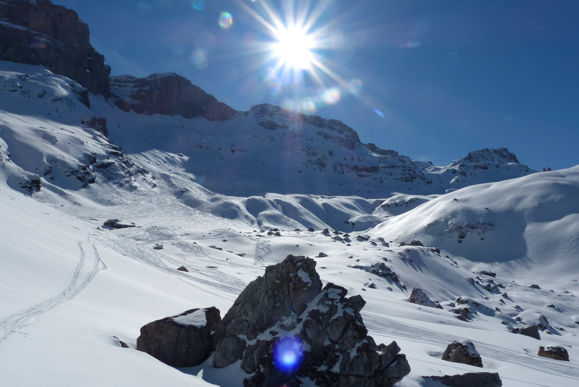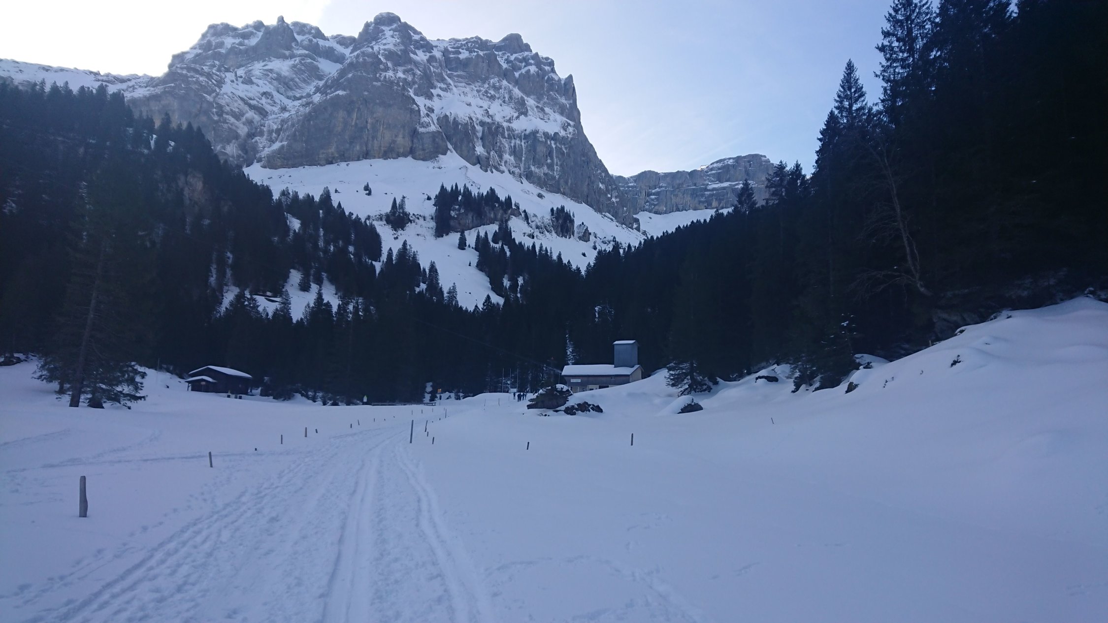 Die Zusatzschlaufe Richtung Gipfel - nach Wächtersbutzen ist landschaftlich einfach schön, es zieht sich noch - auf dem Hochplateau ist der Gipfel noch nicht erreicht. Hier war der Schnee abgeblasen und es ist auch wenig vorhanden.Am Gipfel um 12.30 dann recht starker Südwest Wind. Abfahrt diesmal nach Schuechällen ganz östlich mehrheitlich traversiert, dann immer rechts haltig Richtung Gwalpeten. Der Schnee ganz oben leicht Windharsch, dann schwerer Pulver - drehbar. Unterhalb 1900 dann auch ganz schöne Pulverpassagen.Bei Gwalpeten östlich haltend oberhalb Spitzbäch in den Weg und retour.