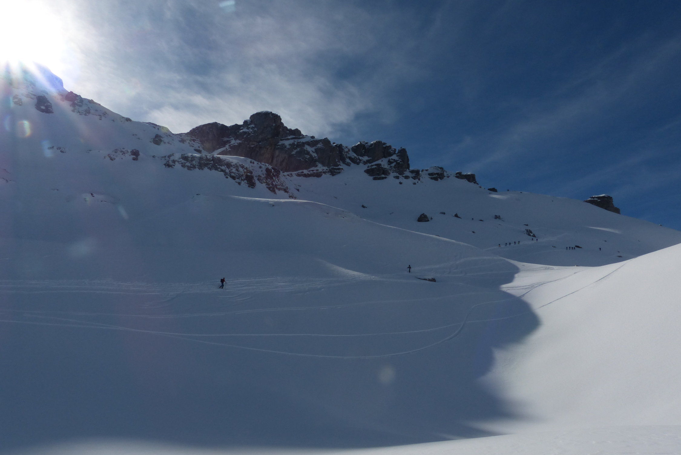 Ja es waren viele Skitourengänger unterwegs, trotzdem gut verteilt. Persönlich war ich im 2015 das letzte Mal auf dem Glatten. Am Gipfel um 12.30 kein Grossandrang.Abfahrtsrouten sind jetzt doch recht verfahren. Es hat noch Platz. Letzter Teil teilweise fast pistenartig. Wir waren heute um 08.30 schon spät dran. Die Parksituation ist beschränkt. Es ist natürlich schon praktisch, wenn die Strasse in Sali offen ist.