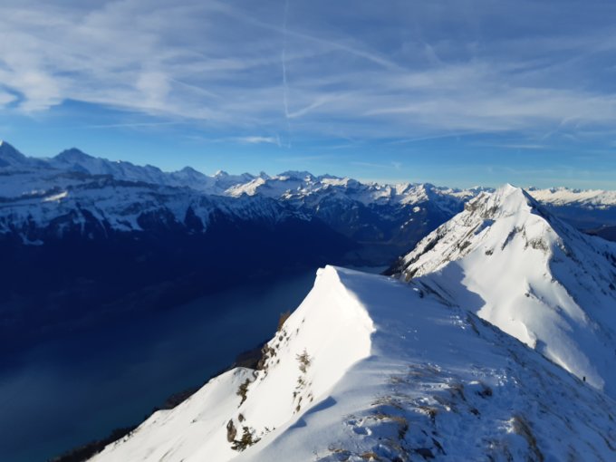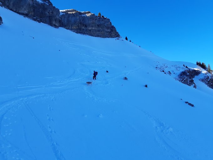 Beim Aufstieg dachte ich - sind es gute Verhältnisse oder "machbare" ? In der Abfahrt war ich mir sicher - gute Verhältnisse. Ab dem Parkplatz hat es Firnschnee. Im Aufstieg sieht man einige Bilder bei dem der Schnee durch "Sabine" und Co. abgeblasen wurde. Dies stört aber nicht wirklich. Alles im allen ein sehr gute Aufstieg und Abfahrt. Die letzten Meter zum Gipfel sind abgeblasen und zu Fuss in Angriff zu nehmen. Die Abfahrt war mit lockerschnee im Gipfelhang tiptop und irgendwann übergehend in tragenden, sehr schönen Firn.