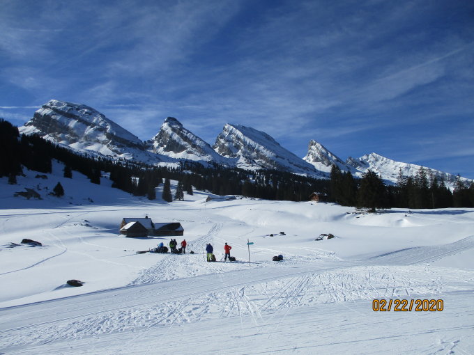 Die Tour wurde heute rege begangen. Der Anteil an Schneeschuhgängern war dabei etwa gleich hoch, wie der der Skitourengänger.