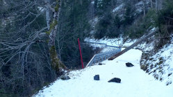 >>> Bügelsäge mitnehmen: nur der Wipfel liegt auf der Strasse, Durchmesser ca. 17cm, kann zu zweit weggezerrt werden!