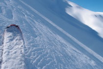 Schnee ist meist etwas windgepresst. Das spuren in der Rinne ging gut zum Aufsteigen mit Ski. Ein kurzer Teil ist bis aufs Gras ausgeblasen.