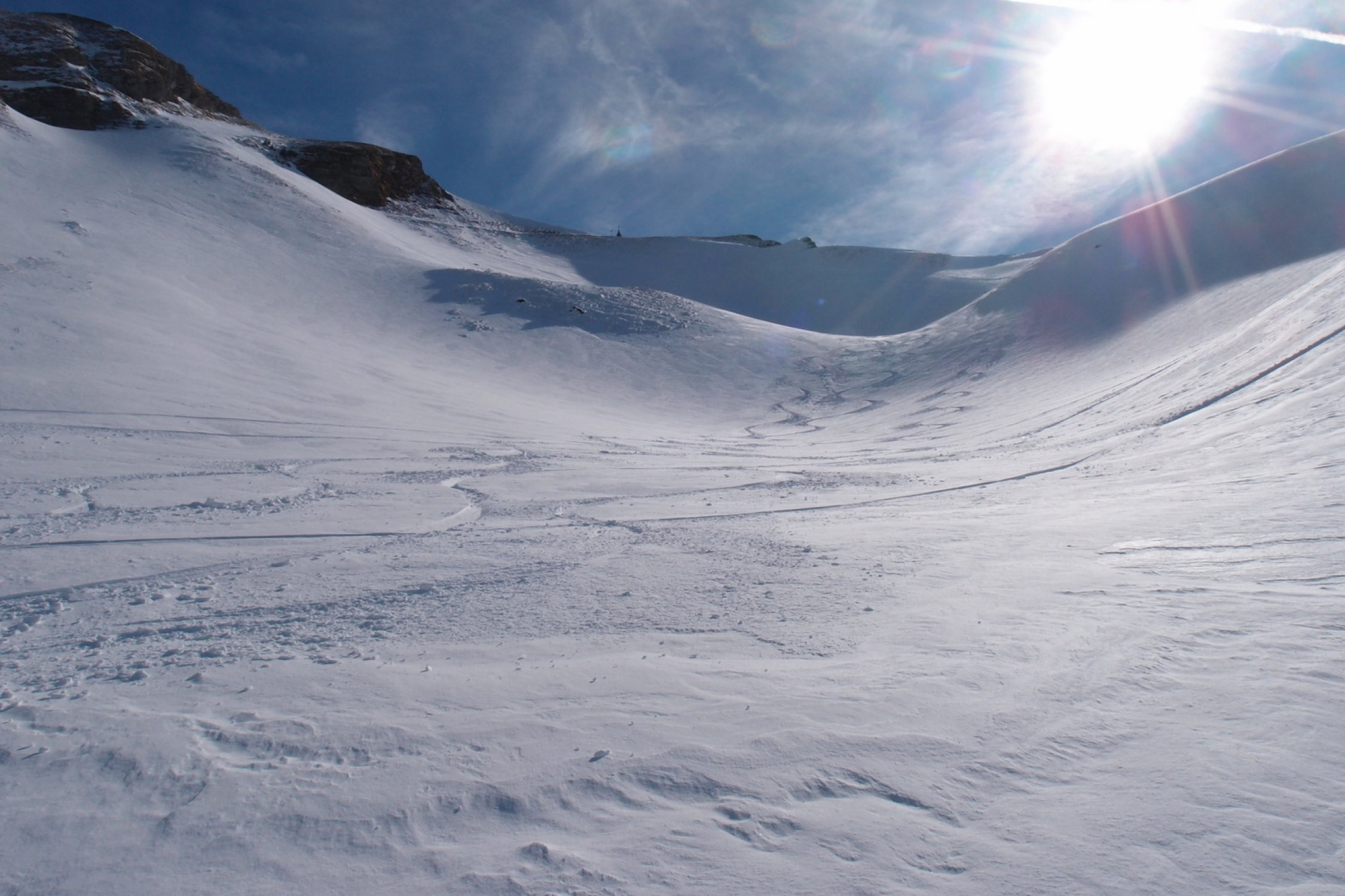 Wunderschön in dem Gebiet. Nach den Schneefällen der letzten Woche, aber auch viel Windverfrachtung war es noch unverspurt.