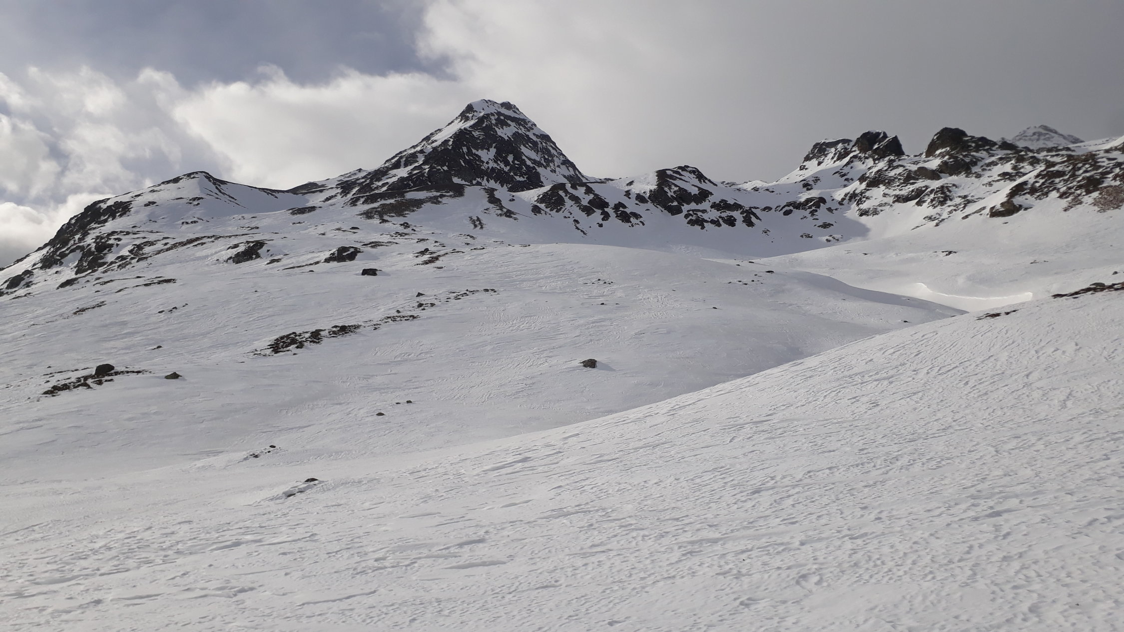 Die ganze Gegend ist stark vom Wind gezeichnet. Entsprechend sind die Abfahrten nicht nur Genuss. Wenn der neue Schnee ohne Wind kommt, wird es besser.