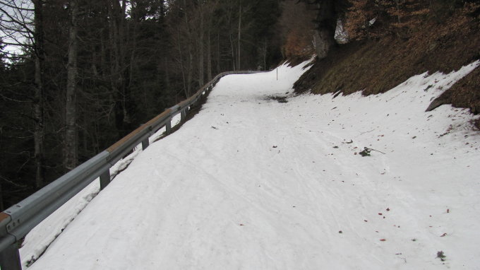 Der Schnee war heute überall nass war aber überraschend gut zum fahren im Gipfelhang wie auch auf der Passstrasse zurück zum Bad Laterns
