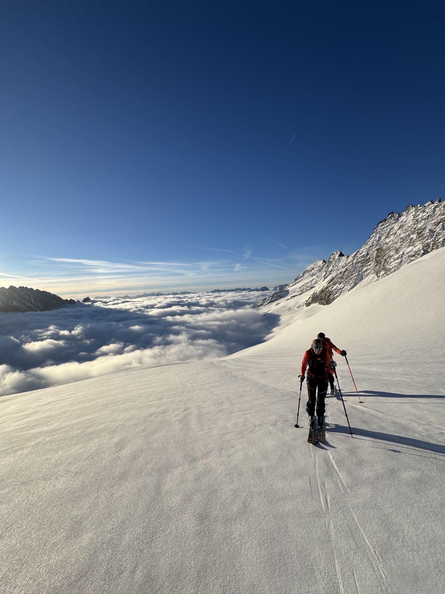 super Firnverhältnisse am Sustenhorn ab Voralphütte. Aufstieg sowie Abfahrt zur Voralphütte… Couloir sehr gut zu gehen…