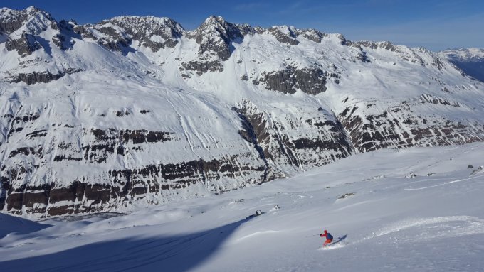 Pistenartige Verhältnisse im Aufstieg. Direktaufstieg mit Ski zum Gipfel geht gut. Abfahrt Nordwest über Rücken nach "Zum Dörfli" sehr gut. Ebenfalls viele Spuren auf dem Rücken "Breit Rick".