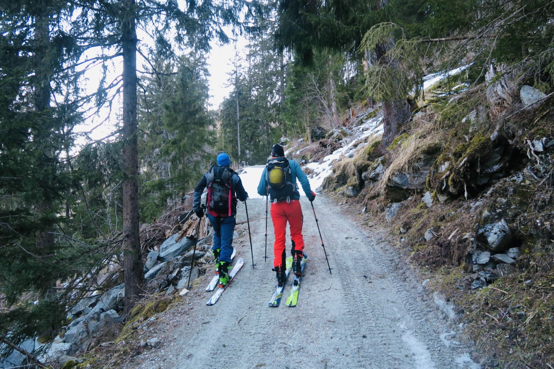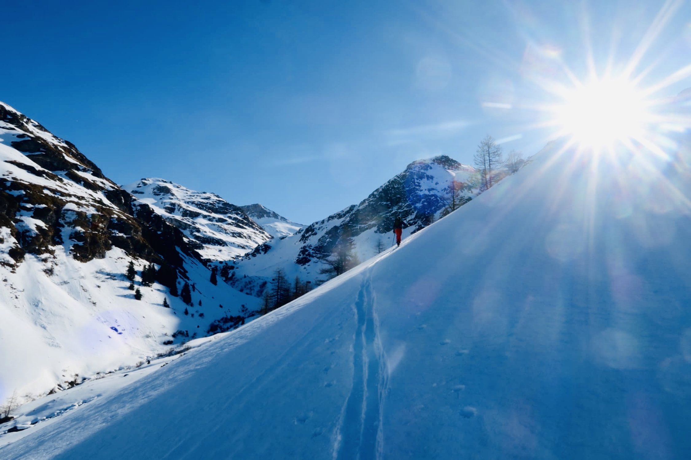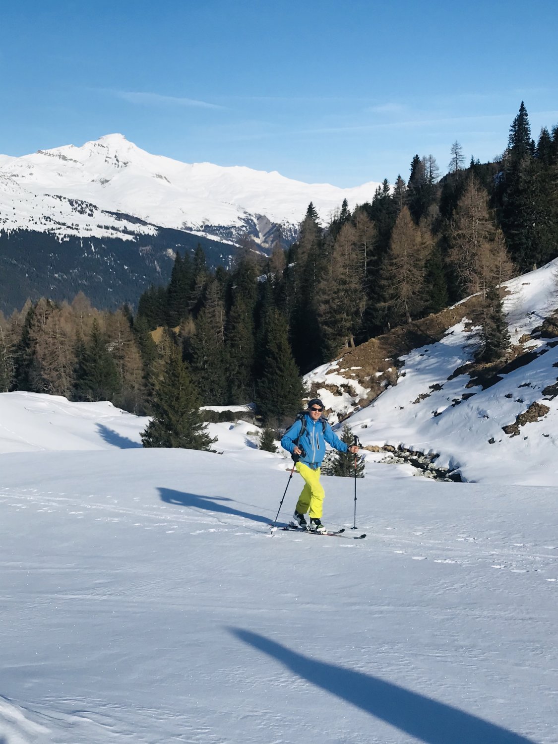 Das "machbar" bezieht sich auf den mühsamen Start (und auch Abfahrt) und die etwas harten Schneeverhältnisse im Steilen. Viel wegrutschen, was im steileren Gelände (ab 2500) mit den Harscheisen kompensiert wurde. Ab Alp Sut Fuina (1900m) bis Foppas (2400m) sind eigentlich gute (Pulver, 5-10cm) Verhältnisse im Nord- Nordostbereich anzutreffen - sogar first-lines gabs für uns. Insgesamt trotzdem nur machbar, denn zuviele Faktoren waren erschwerend um ein "gut" zu vergeben. Dafür bräuchte es mehr Schnee ohne Windeinfluss und kältere Tage. Das positive war das Wetter, das wir allein waren und die 2 Pulverhänge unterhalb 2400m.