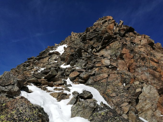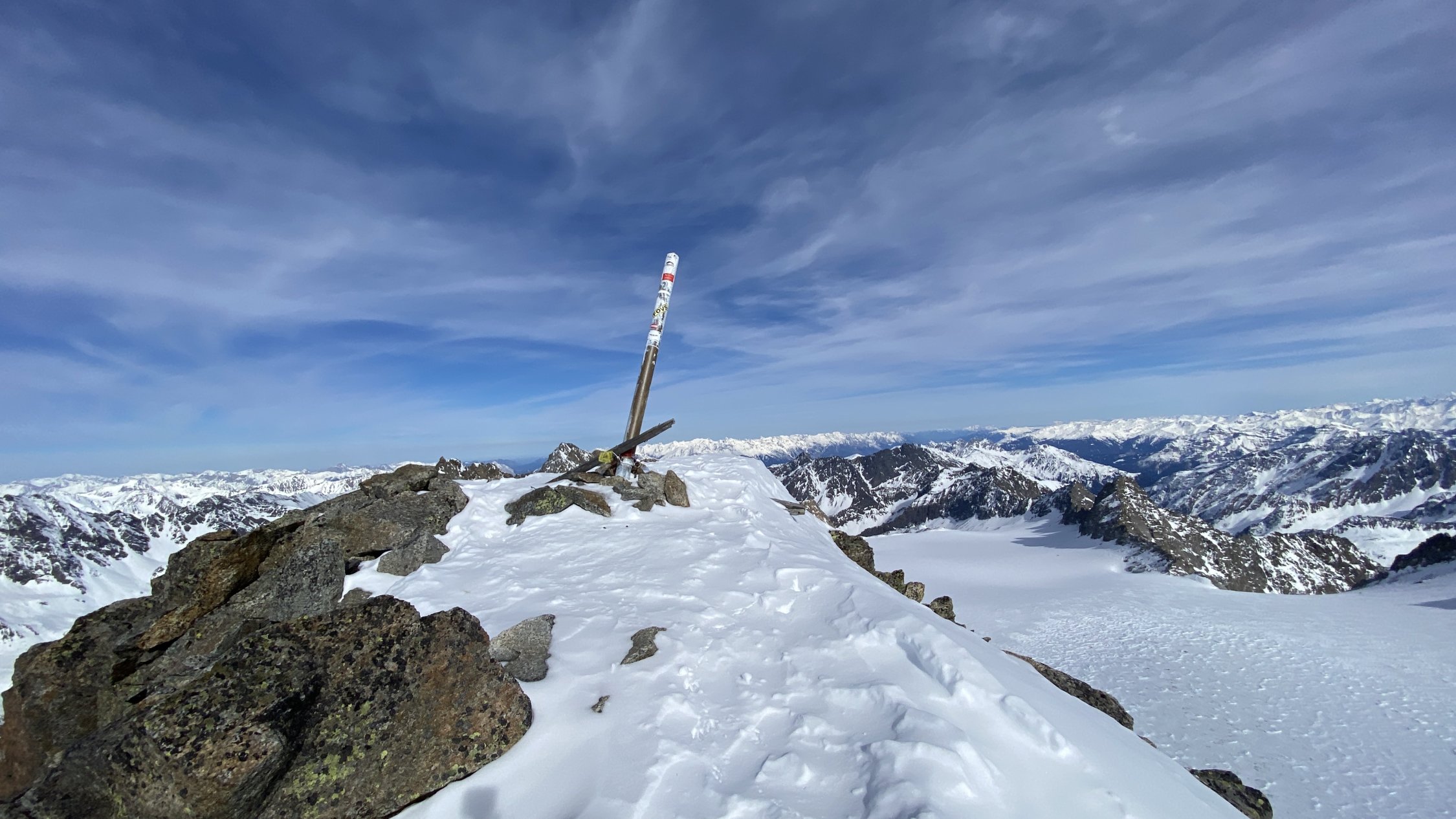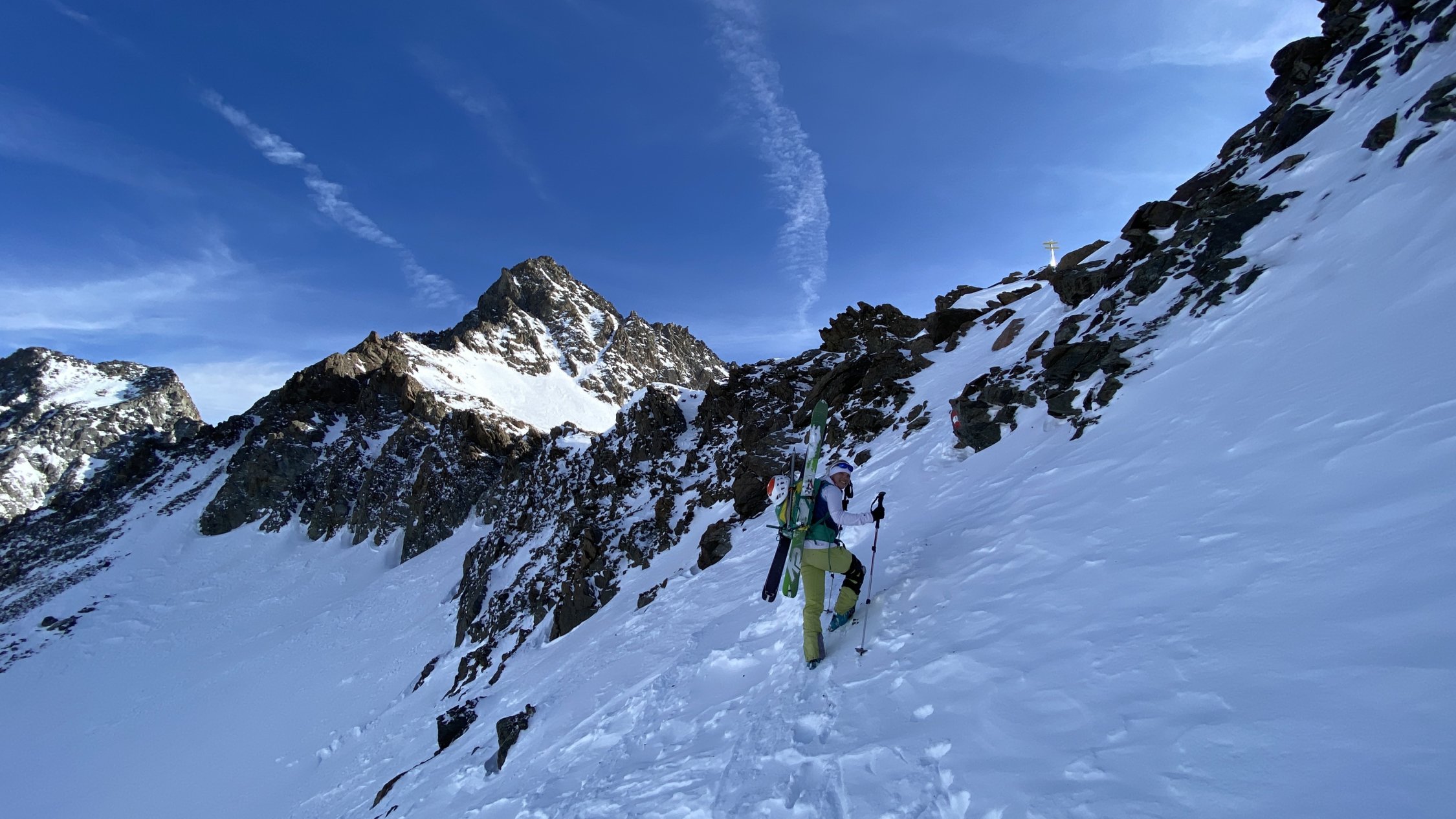 Das Längental ist zum Teil wie eine Autobahn präpariert.. Allgemein liegt recht wenig Schnee. Die Rinne selbst bis zum Skidepot war sehr Griesig und äußerst mühsam zum Steigen. In der Engstelle bricht man zum Teil bis zu den Felsen durch. Der Gipfelanstieg ist sehr gut machbar aktuell da der Fels trocken und so gut wie kein Schnee liegt . Abfahrt durch die Rinne zum Lüsener Ferner noch guter Pulver. Der Gletscher selbst hingegen ist zum Teil Blank geblasen und im Mittelteil ist er so Wellig das es zum Teil Unfahrbar ist. In der Mauer liegen sehr viele Lawinenkegel. Dort wo man fahren kann ist es zum Teil Bock hart. Es braucht dringend Neuschnee!