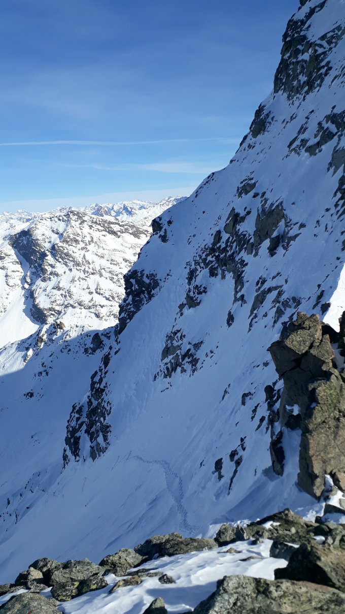 Morgens schon Sulz im Aufstieg um 8.00 Uhr, zur Fuorcla Misaun abwechselnd Eisplatten (Steigeisen) und grundlosen Griesschnee.Unser Zeitmanagement war dahin. Die Abfahrt entspechend bescheiden, da der Sulz des Morgens stellenweise durchfeuchtet und nicht tragfähig war.