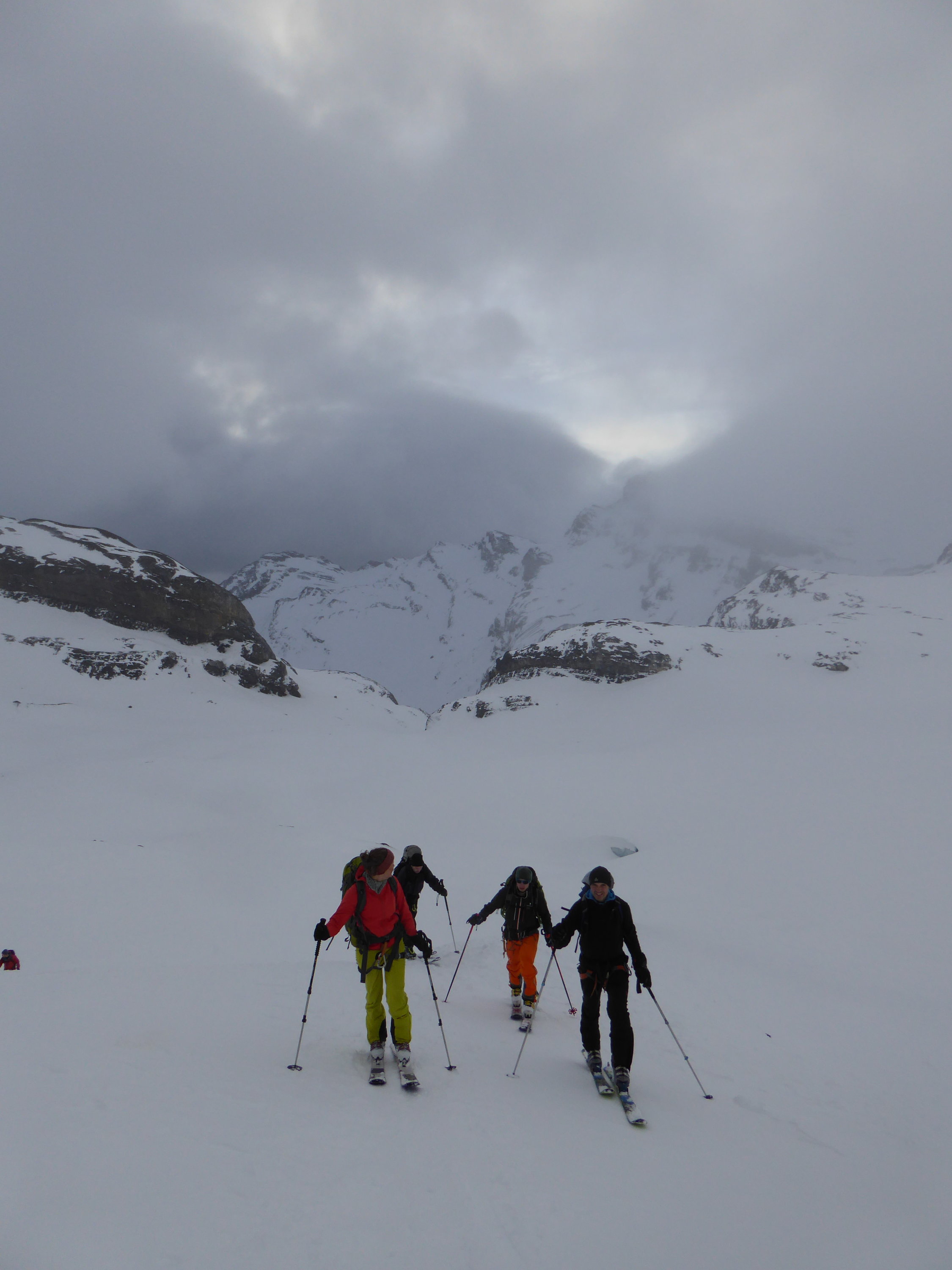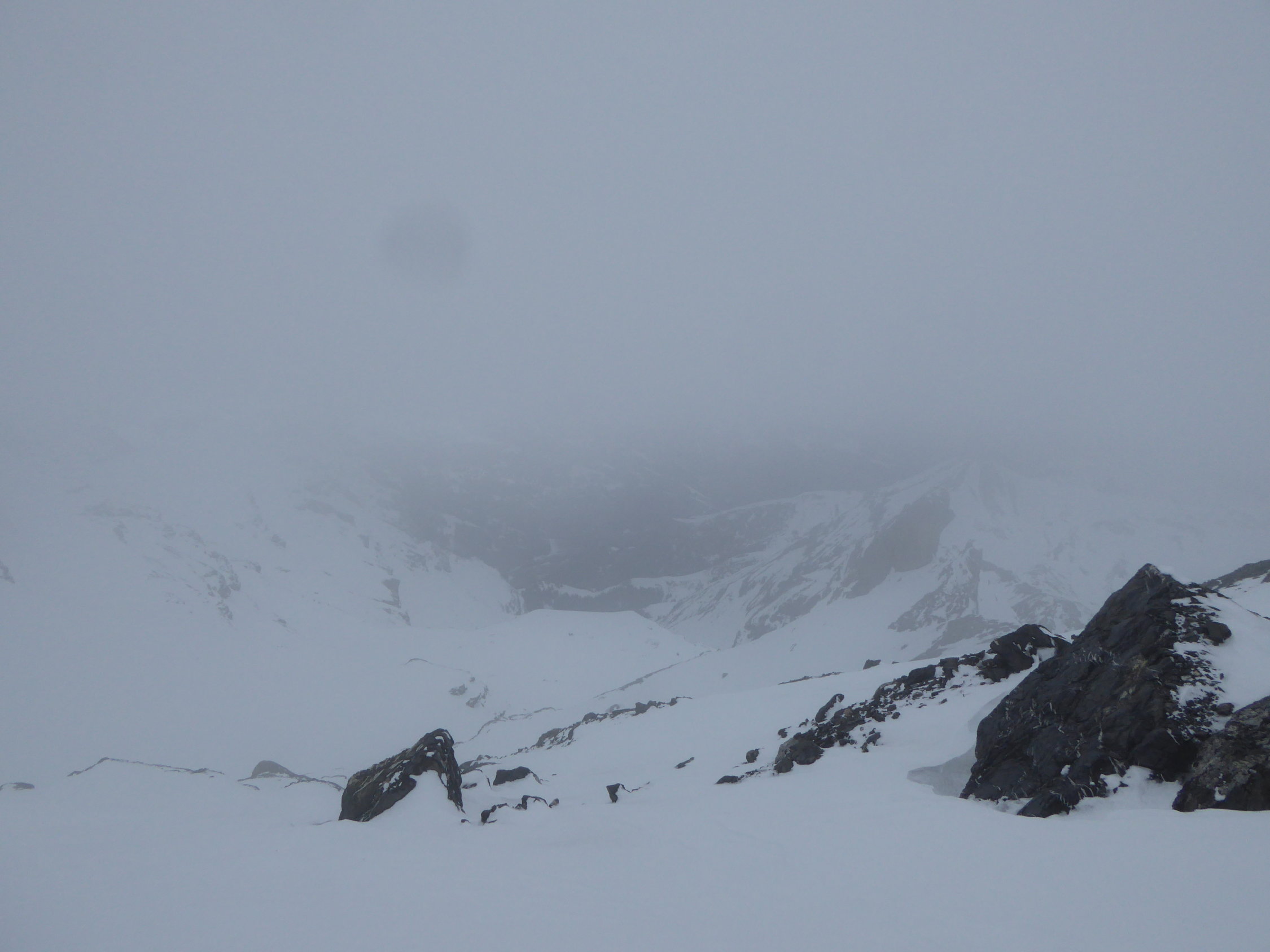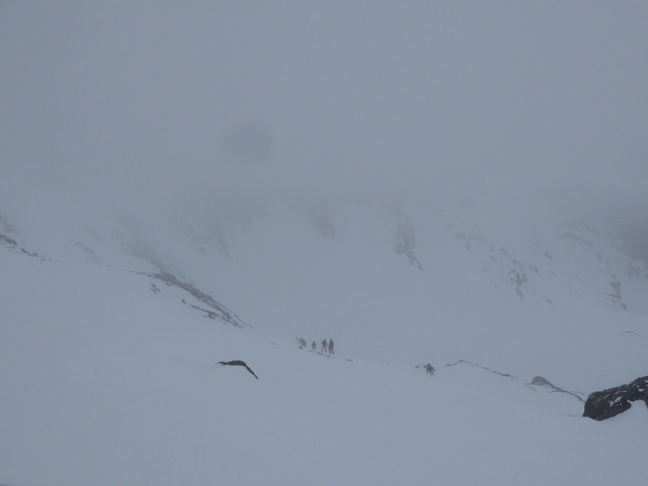 Ab Lämmerenhütte bei feinstem Nieselregen gestartet, entsprechend beim Aufstieg bis auf ca. 2900m fette, schwere Stollen an den Fellen. Ab ca. 3000m dann Null Sicht bei Nebel/Wolken und mit diffusem Licht. Ab Mittelgipfel Querung Richtung Grossstrubel bei viel Wind (wie angesagt). Übergang beim Früestücksplatz zur Engstligenalp sah eisig aus. Unabhängig davon Abfahrt ins Ammertentäli. Schwerer Pulver bis auf ca. 2500m, dann immer schwerer werdender Nassschnee. Schneemassen im Engpass auf 1800m waren alle unten. Ab ca. 1600m dann mit Tragpassagen bis auf 1350 fahrbar, dann Tragestrecke auf weg bis Simmenfälle. Wenige weitere Abschnitte hätten noch befahren werden können.