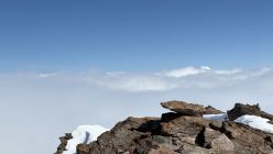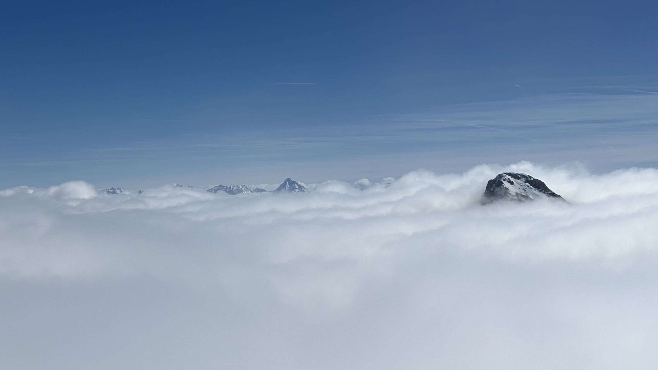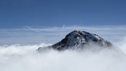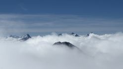 Erst hinter der Galerie zeigte sich die Sonne. Zum Glück stieg ich schneller als der Nebel, so dass ich auf dem Gipfel eine Viertelstunde die Wärme geniessen konnte.