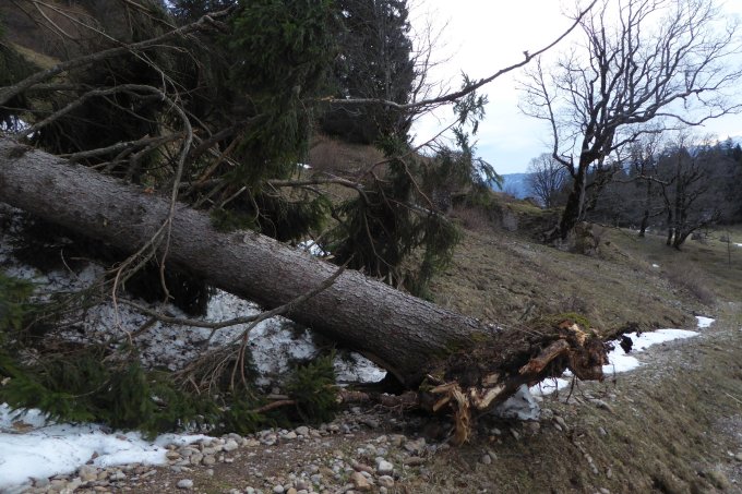 Start um 8 Uhr, Wetter nicht ganz so toll wie noch angekündigt. Oben sehr penetrante Windböen. Aper bis oberhalb Ornach. Erst im steilen Hochwald div.Schnee, aber kein Problem. Die kleine Ostrinne unten im flachen Teil nicht ganz tragender Brucharsch, kann links auf Rippe umgangen werden. Wo es steiler wird und oben raus guter Trittschnee(trotz+Grade). Übergang Stuiben völlig freigeblasen. Abstieg vom Stuiben dir.vom Kreuz auf Schneefelder zurück nach Rothen runter. Dies hätte man im Aufstieg ganz rechts auch im trockenen machen können.