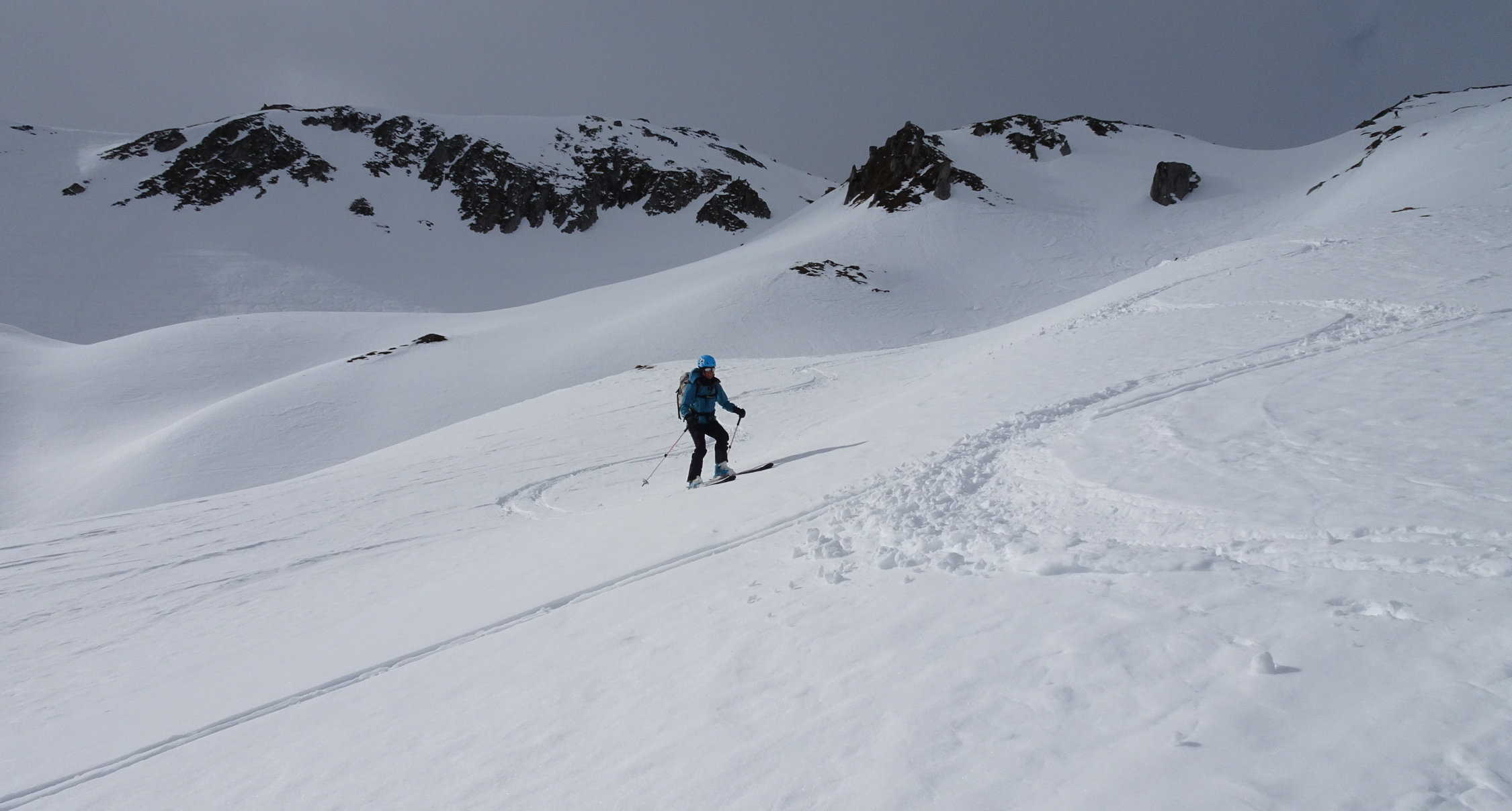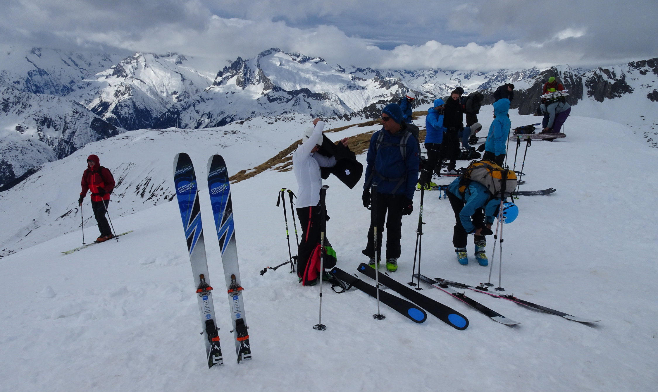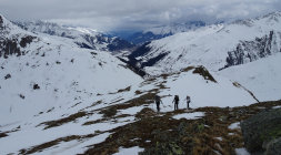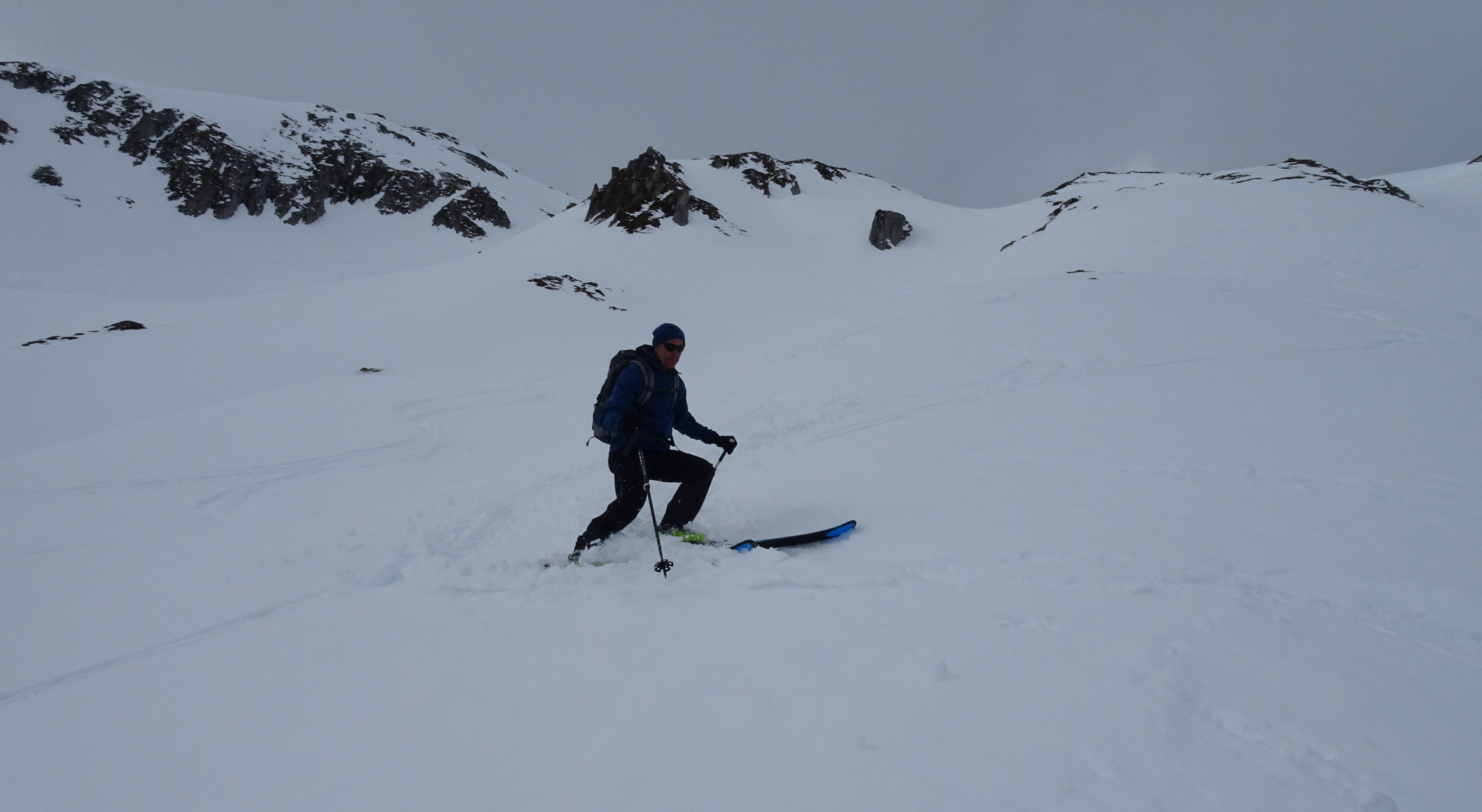 Wir sind am Anreisetag mit der RhB zum Oberalppass gefahren und erst um etwa 11 Uhr losgelaufen. Die Temperaturen waren von Beginn weg zu hoch, was sich dann in der Abfahrt durch die Osthänge Richtung Maighels auch zeigte. Es ging noch einigermassen gut, war aber wie Skifahren im Teig. Von der Schneemenge her gut machbar.
