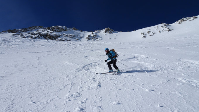 Bei wunderschönem Wetter mit den Liften bis unter den Piz Ault. Querung zur Leiter und über den Brunnifirn hinauf zum Oberalpstock. In der Abfahrt über die oberste Lücke ins Calmut und durch das Val Strem hinaus nach Sedrun.