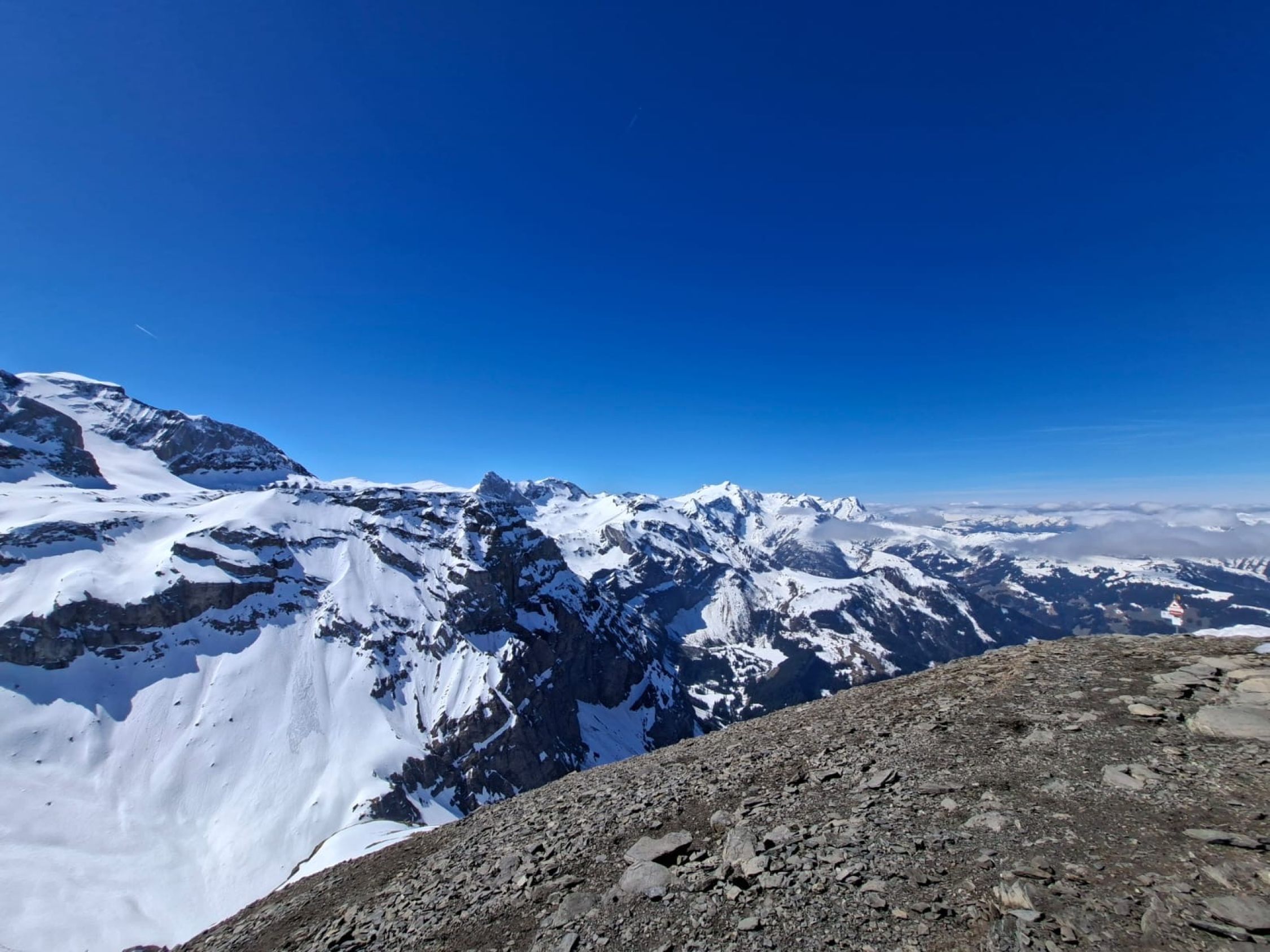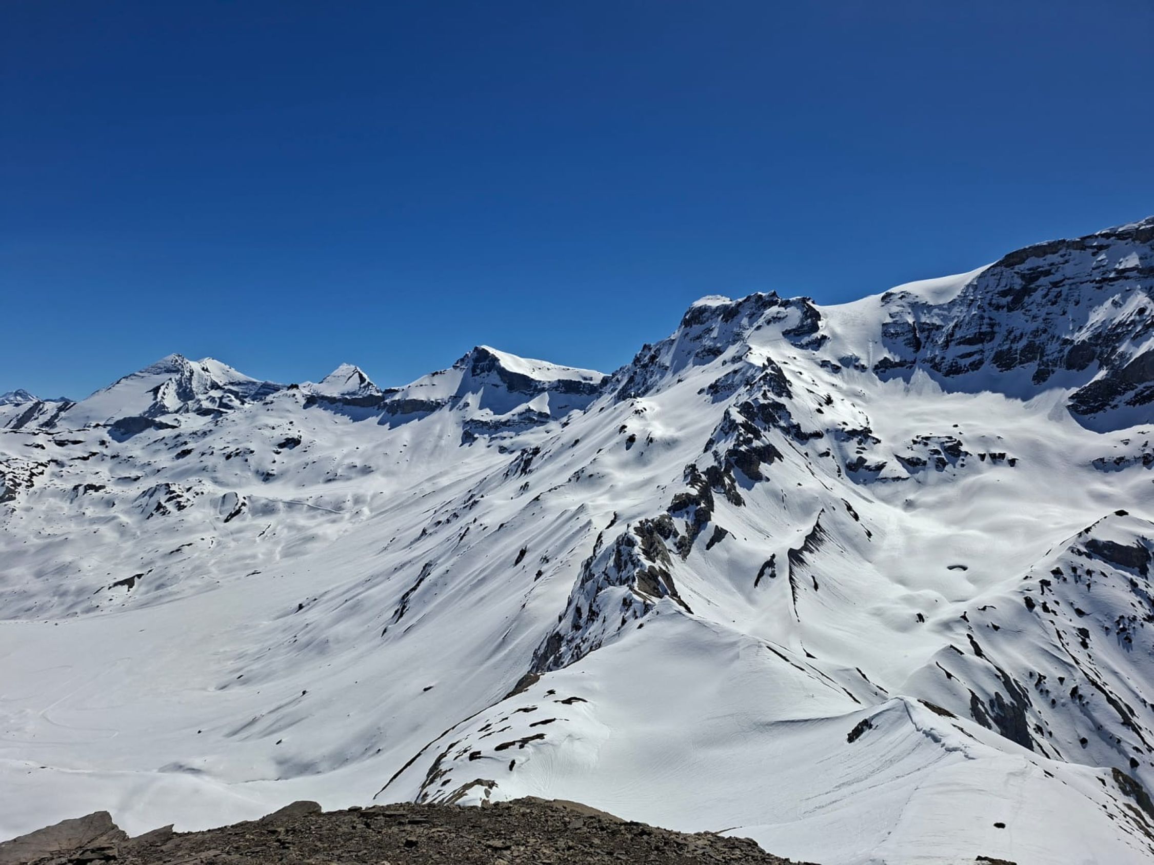 Start nach der Kaffeepause auf Engstligenalp um 9.45 Uhr. Um 10.30 Uhr zwei Skitüreler in der Abfahrt und nochmals zwei gegen 11.30 Uhr angetroffen. Verhältnisse da wahrscheinlich recht gut. Bei meinem Abstieg um 12.30 Uhr nass und tiefer Sulz. Sonneneinstrahlung stark und ziemlich warm. Schnee hat es noch genügend. Bei tieferen Temperaturen alleweil lohnend.